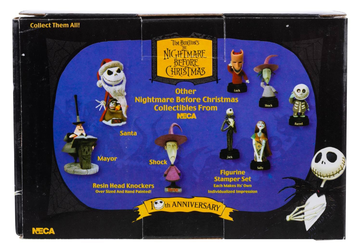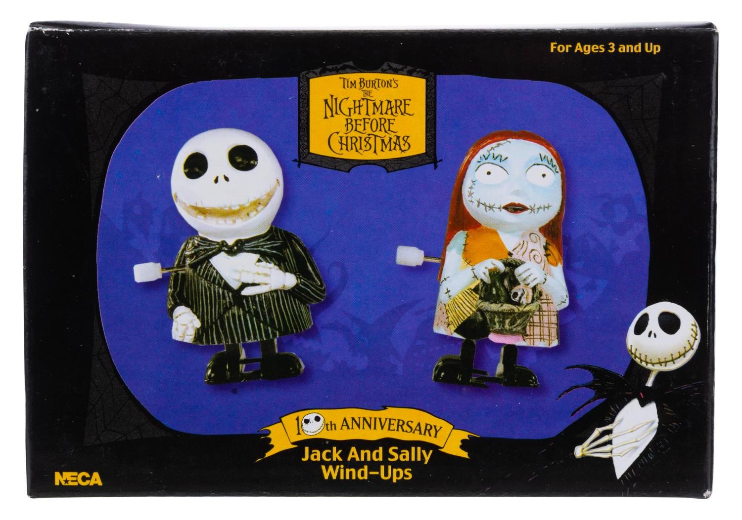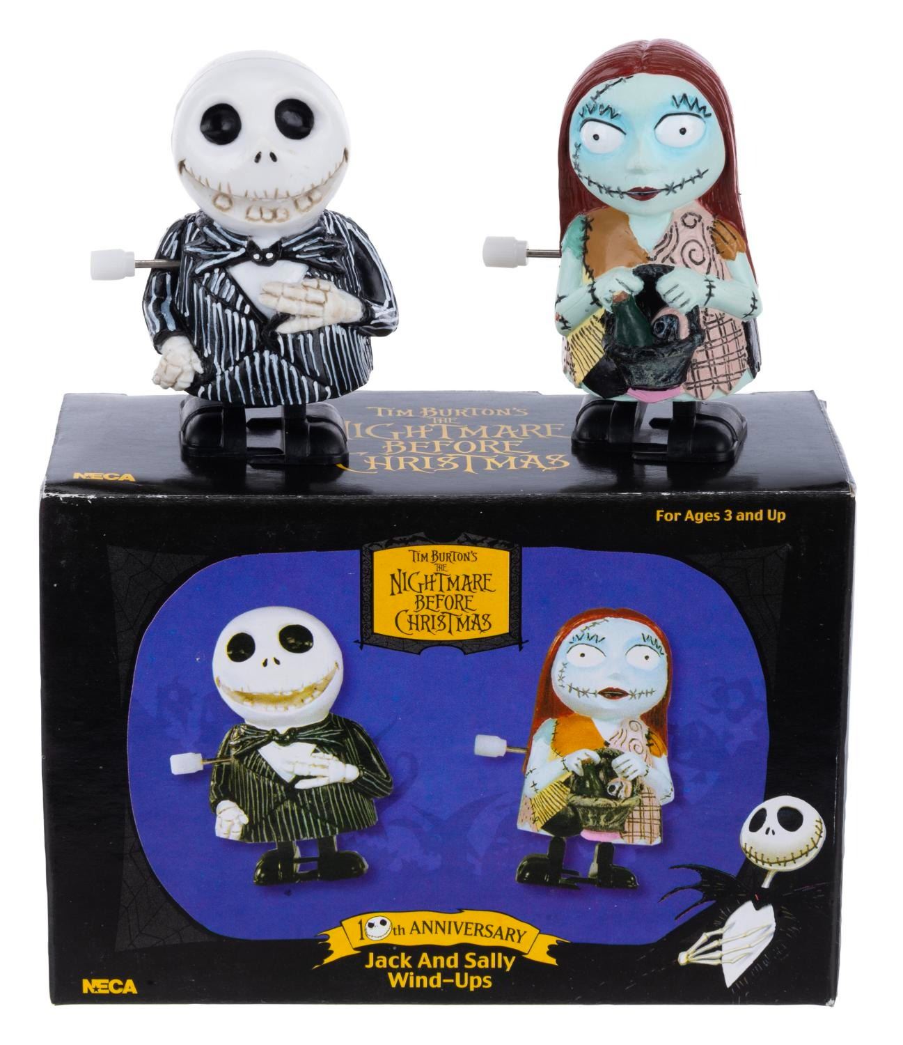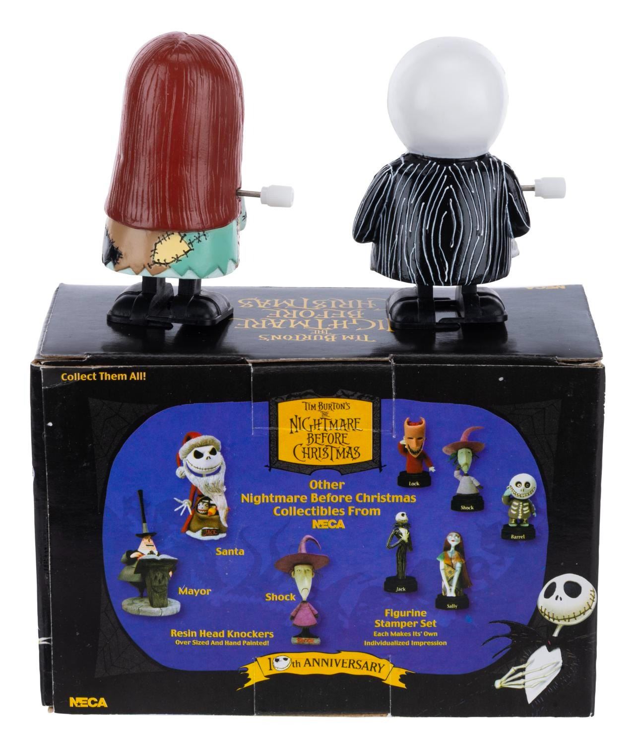 (NECA, 2003) A pair of Jack Skellington and Sally wind-up toys, released for the 10th anniversary of “The Nightmare Before Christmas.” Each standing 3” tall, the toys are in fine working condition, as new with their original box.