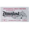 (Disneyland, 1955) A very rare silver opening day press preview ticket to Disneyland on Sunday, July 17, 1955. Since the opening day events were being broadcast on Live TV, guests and VIPs were requested to arrive at different times to accommodate the televised ceremonies. This opening day ticket features an arrival time of 2:30pm and measures 3.5"x6.5". The condition is very good with minimal edge-wear.