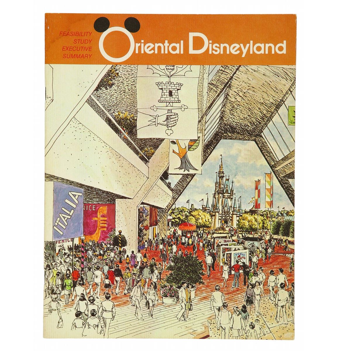 (WED, 1975) An extremely rare and fascinating 1975 feasibility study for “Oriental Disneyland”. The (10) page book touches on the studios negotiations with the Oriental Land Company, the potential demand and attendance, and the use of the available land. The study concludes that the project is feasible and worthwhile. A wonderful piece of memorabilia documenting the beginnings of Tokyo Disneyland. The book measures 11”x8.5”. In good condition with some staining from moisture.