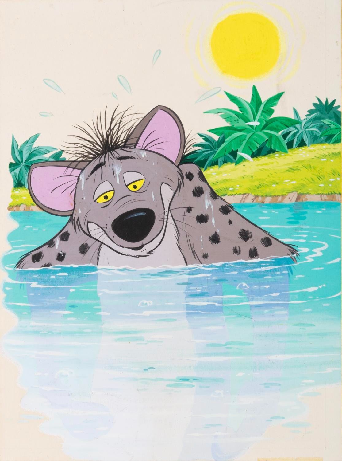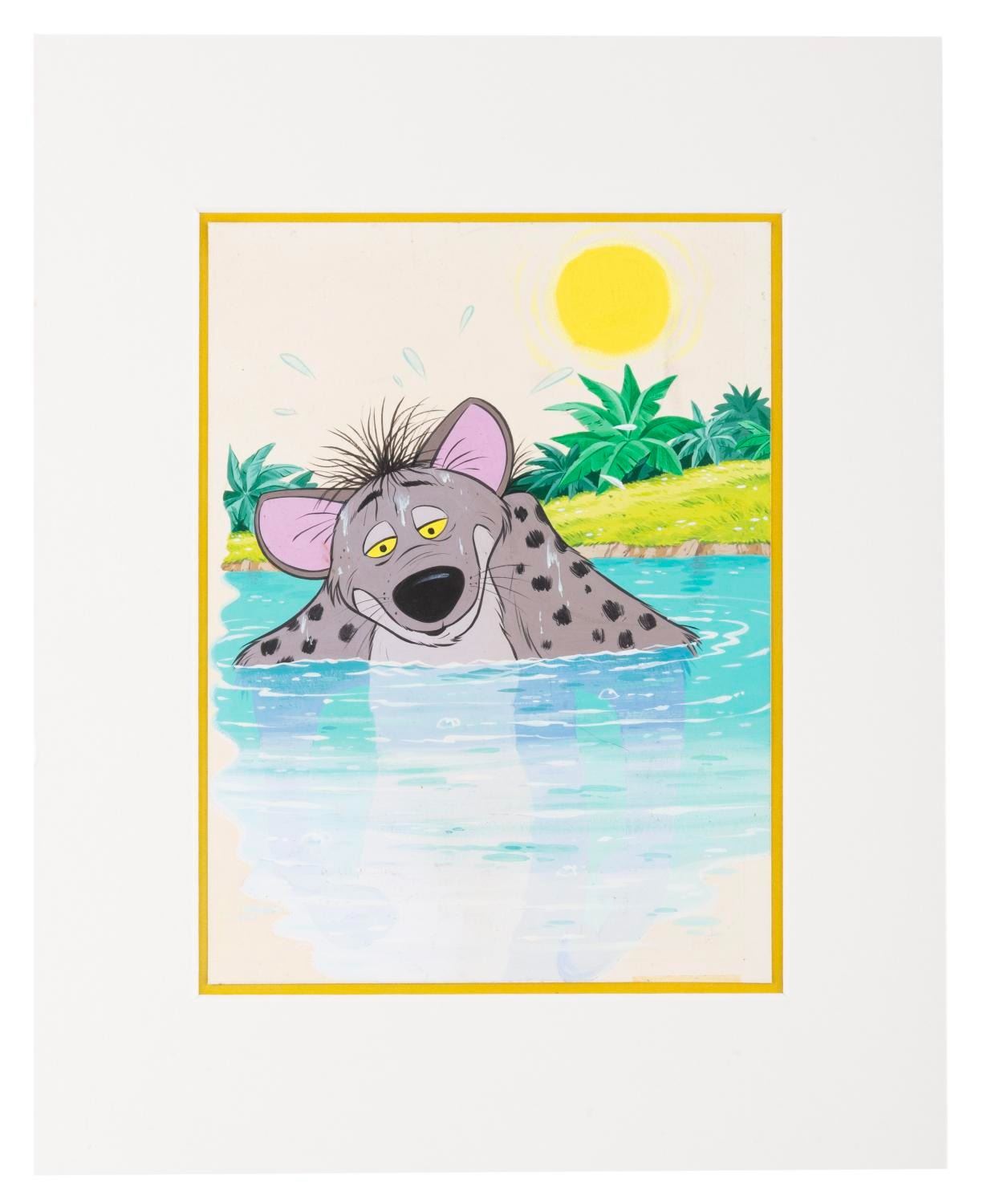 (Disney, 1960s/70s) An original acrylic painting of a hyena. Although closely resembling the hyenas in “The Lion King,” this is most likely for an expanded “Jungle Book” storybook from the 1960s or 1970s. Measuring 6.75" x 9.25" in an 11" x 13.75" matte, the art is in very good condition with light wear.