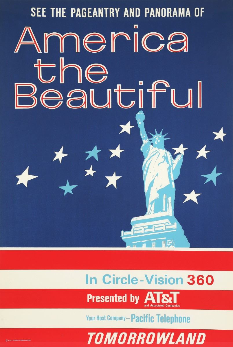 (Disneyland, 1967) Original hand-silkscreened poster for the "America the Beautiful" attraction at Disneyland. Designed by Ken Chapman. Measures 54"x36". In fine condition.