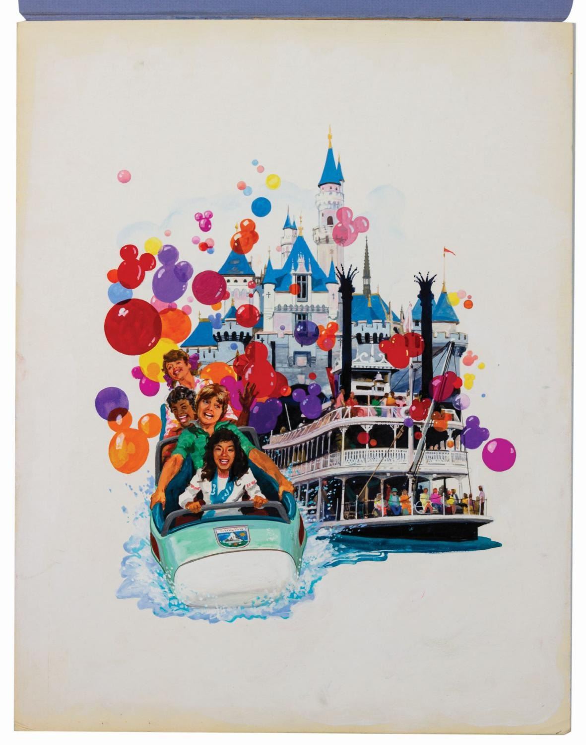 (Disneyland, 1982) An original painting for a poster used to promote special events at Disneyland in 1982. By simply changing the text below this artwork, this same artwork appeared on many various promotional posters for special group events such as "YMCA Days," "Boys Club Days," and "Disneyland Recreation Days," among others. Accomplished in acrylic on art board, the painting has an image size of 14.5"x12" on the 20.5"x16" board. The condition is very fine with little wear near the edges of the board.
