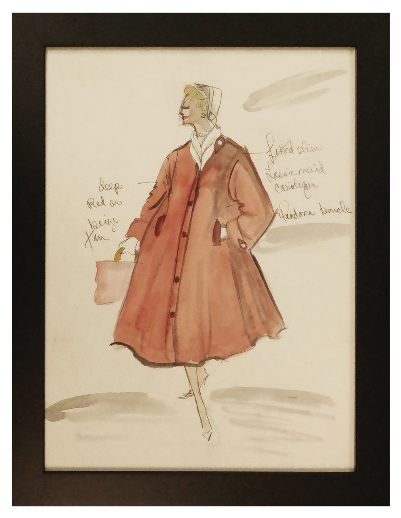 (CBS, 1962) An original costume design by legendary fashion designer Edith Head for The Lucy Show. Accomplished in watercolor and colored pencil on art paper, the artwork measures approximately 15"x11" and is in very good condition with some minor discoloration and wear from use.