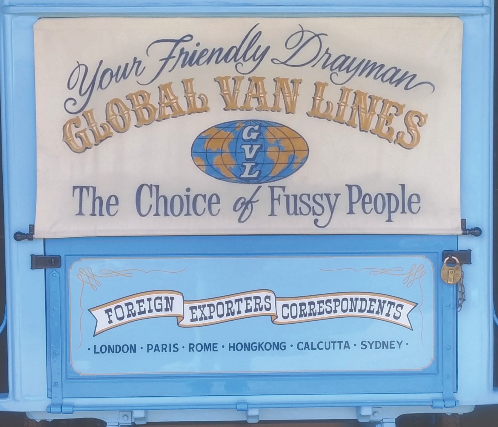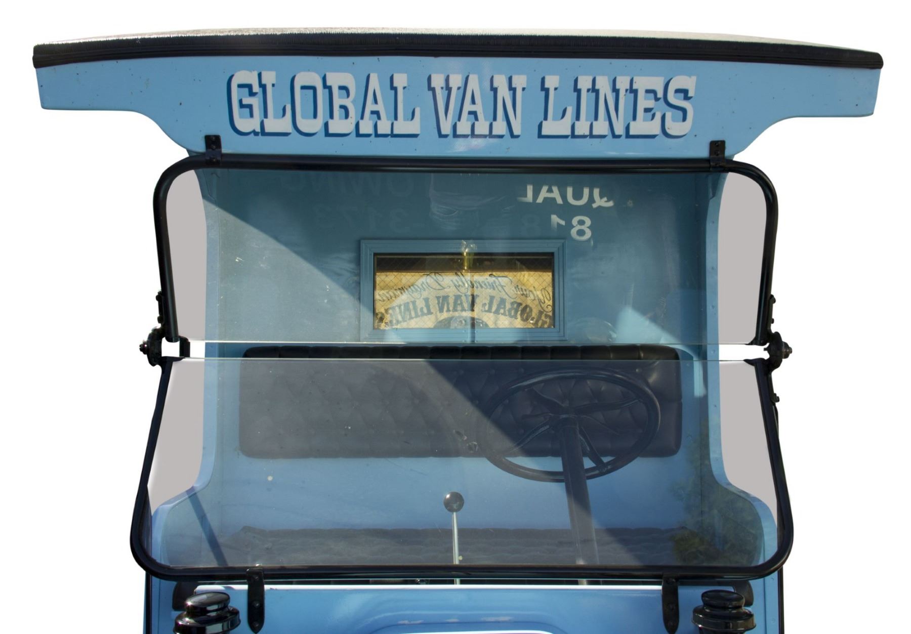 (Disneyland, c.1963-79) This is the original Global Van Lines moving truck from the Global Van Lines building at Disneyland. The Global Van Lines moving truck was a Main Street landmark, with its likeness appearing in Disneyland postcards, toys, and countless photos and home videos as a popular photo location. This early Disneyland vehicle was built by famed Imagineer Bob Gurr in the early 1960s and was operable during its first few years before being modified to a static display vehicle around the mid-1970s. After Global Van Lines ended its Disneyland sponsorship in 1979, this vehicle left the park and was later sold. This vehicle has been faithfully restored with the help of Bob Gurr to its original functioning, museum quality condition. The truck's C-cab body is original, and has been restored back to its functioning condition. The chassis was created by modifying a Model-A Ford to resemble the chassis of the early 1900's. The wheels are from a vintage Model-T Ford fire chief car from the early 1900s, and the engine and forward part of the chassis are from a 1928 Ford Sedan. The motor is a four cylinder "flathead" Ford, and the radiator, hood, and windshield frame are 1914 reproductions. The blue paint was matched from the original truck body paint, and the seat and signage were reproduced from vintage Disneyland photos. The vehicle measures 189" long, 70" wide, and 86" tall, and is in very fine condition. This item will require special shipping arrangements, please contact us for inquiries and estimates.