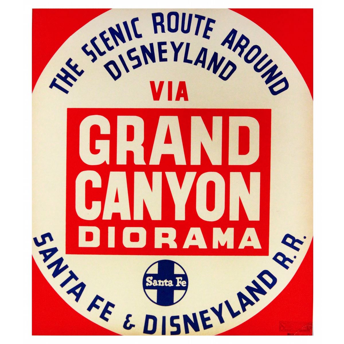 (Disneyland, 1958) A stunning original hand-silkscreened color lamppost shield for the Disneyland Grand Canyon Diorama attraction. Although not as well-known as the attraction posters, and certainly more rare, shields like these were placed throughout the park and advertised many of the most popular attractions. Measuring 16 x 18 in. with bright and vivid colors. In vintage fine condition. Unexamined out of frame.