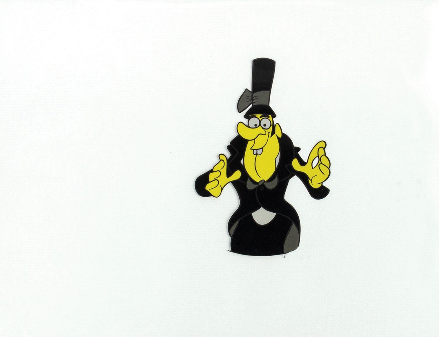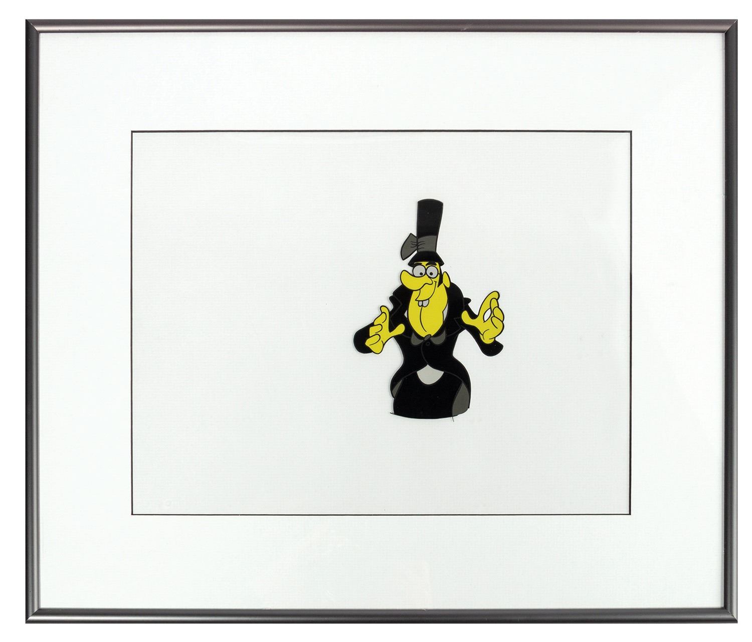 (UPA, c.1962) An original animation cel from Mr. Magoo's Christmas Carol. This cel features the Theif from the Ghost of Christmas Future sequence. The cel has an image size of 5"x3.5" within its 14.25"x17.25" frame. The artwork has not been examined out of frame, but appears to be in very good condition with minor wear to frame from use.