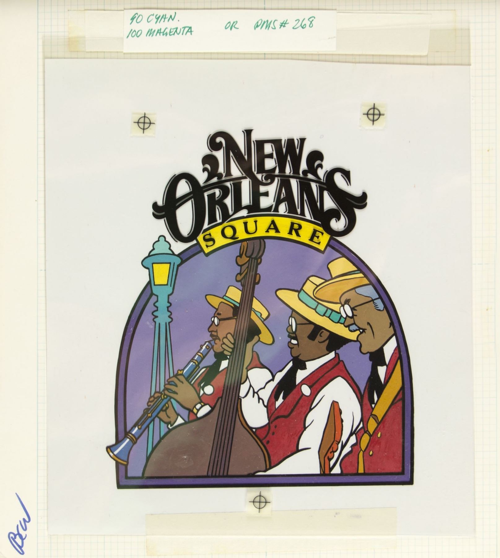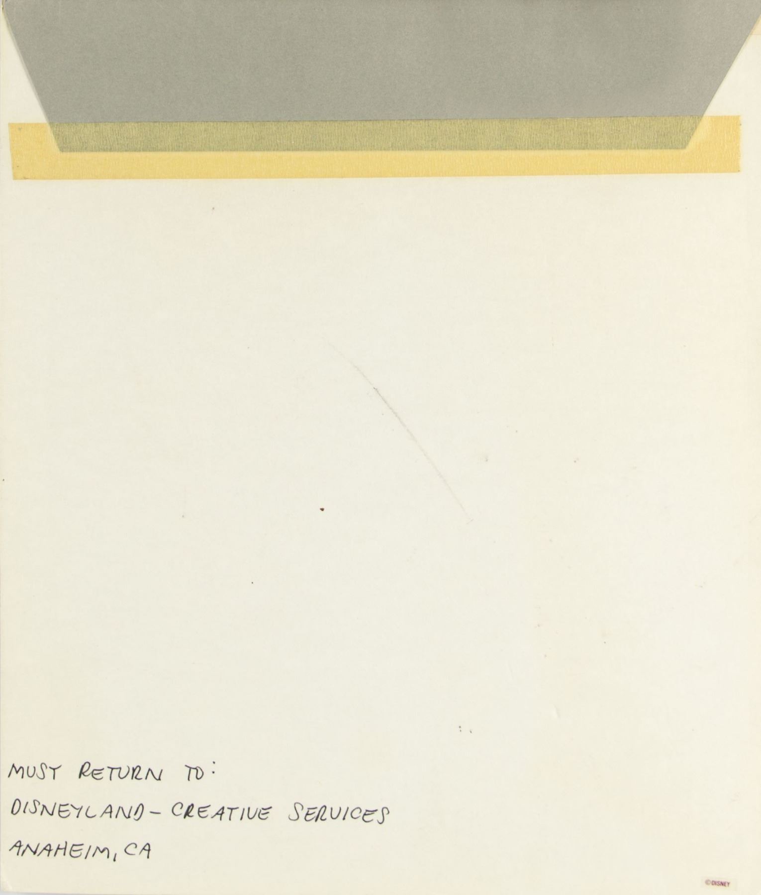 (Disneyland, 1990s) An original promotional painting featuring charming New Orleans Square imagery. This painting is accomplished in acrylic on artist's board with two cel overlays to complete the image. A protective paper covering over this piece is titled "New Orleans Square" and is numbered "5". On the back of the board the message, "must return to: Disneyland - Creative Services, Anaheim, CA" is written in black ink. This item measures 11.25"x9.5" and is in very good condition with minor edge-wear.