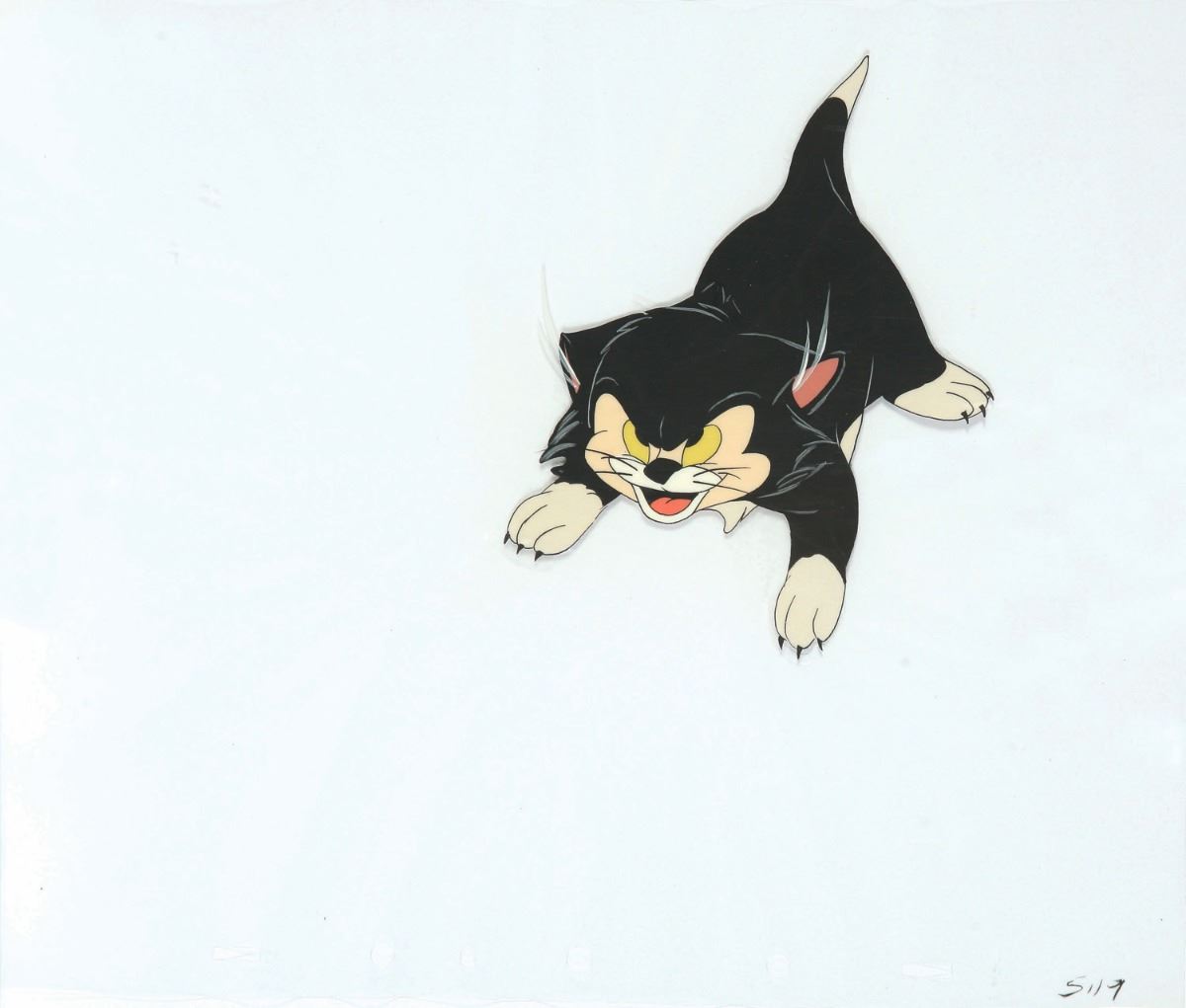 (Walt Disney Productions, 1947) An original hand-painted production cel from the Walt Disney Productions animated short."Figaro and Frankie". The cel measures 9.75"x11.6". In very good condition . The character had at some point been coated in a layer of nail polish to help preserve the cel paint.