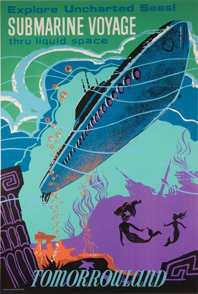 (Disneyland, 1959) A stunning original color poster for the Disneyland Submarine Voyage attraction. Measuring 36 x 54 in. with bright and vivid colors and striking imagery. In vintage fine condition.