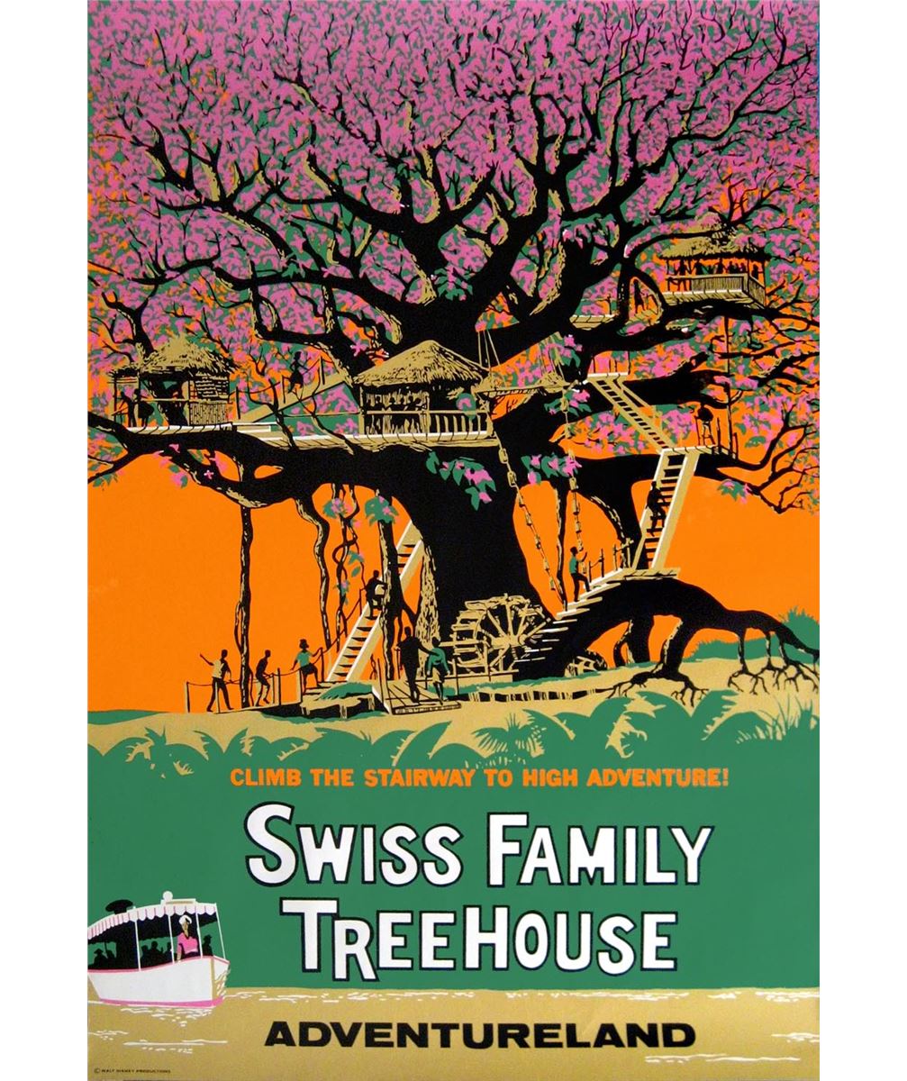 (Disneyland, 1962) A stunning original hand-silkscreened color poster for the Disneyland Swiss Family Treehouse attraction. Measuring 36 x 54 in. with bright and vivid colors and striking imagery. In vintage fine condition. Unexamined out of frame.