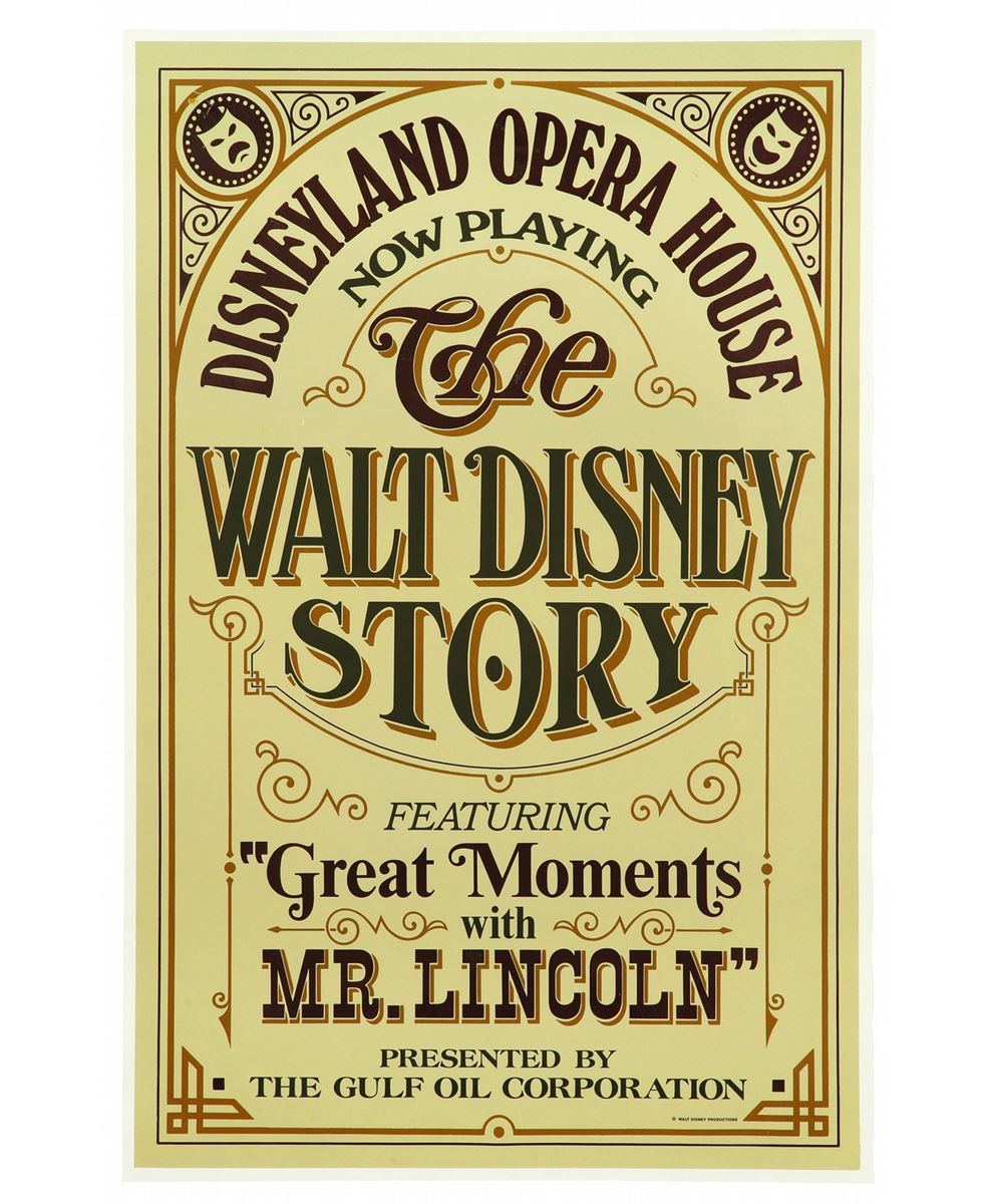 (Disneyland, 1983) Original lithographic poster form the Walt Disney Story attraction. Designed by Bob McDonnell, this poster is dry mounted to board. Measures 44"x28.75". In very good condition with some very light surface scuffing.
