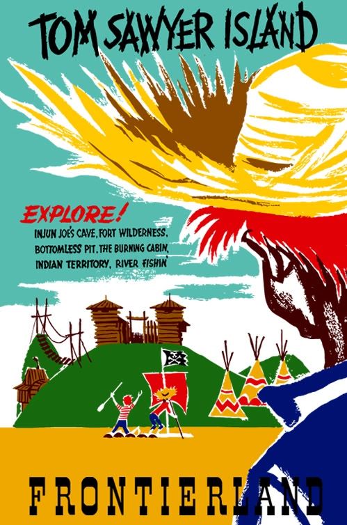 (Disneyland, 1956) A stunning original hand-silkscreened color poster for the Disneyland Tom Sawyer Island attraction. Measuring 36 x 54 in. with bright and vivid colors and striking imagery. In vintage fine condition. Unexamined out of frame.