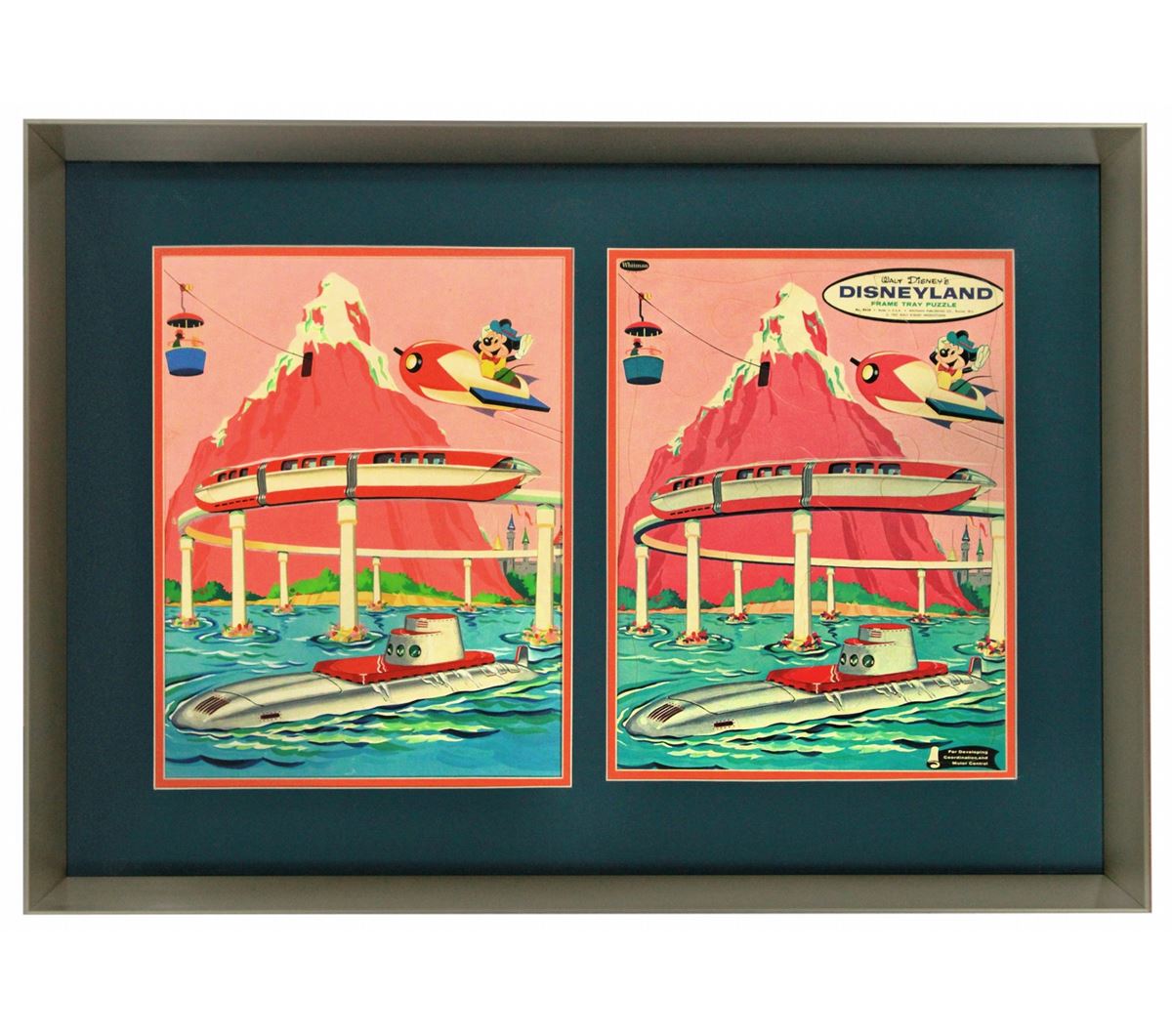 . (Disneyland, 1962) Original Tomorrowland themed artwork used for a Whitman published tray puzzle. Accomplished in Acrylic and Gouache. The artwork is framed together with the original puzzle. In very good condition. Unexamined out of frame.