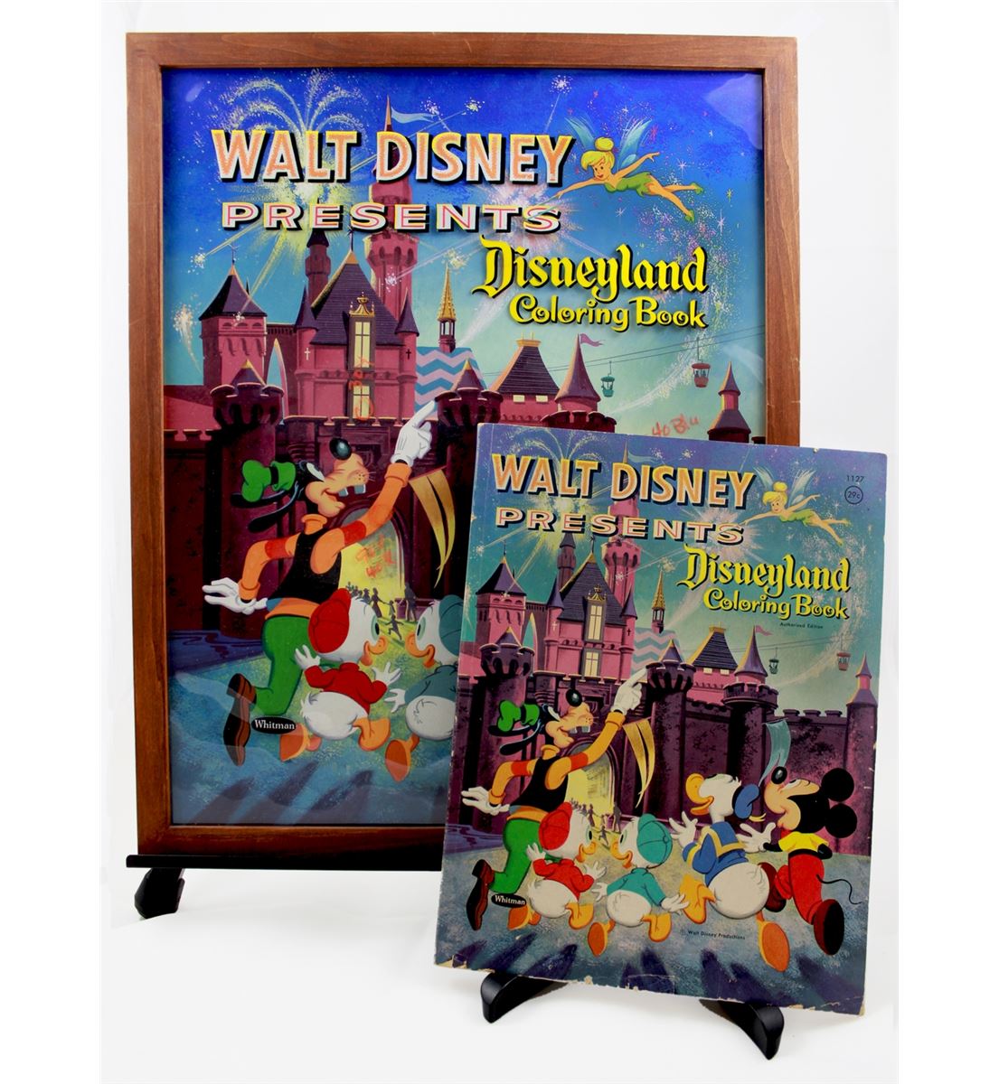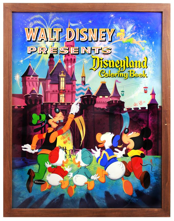 (Disneyland, 1958) Beautiful original artwork for a Whitman published coloring book titled Walt Disney Presents Disneyland. Accomplished in gouache with hand-painted cel overlay of the lettering. The entire piece measures 16.5 x 13 in. overall and in fine condition.