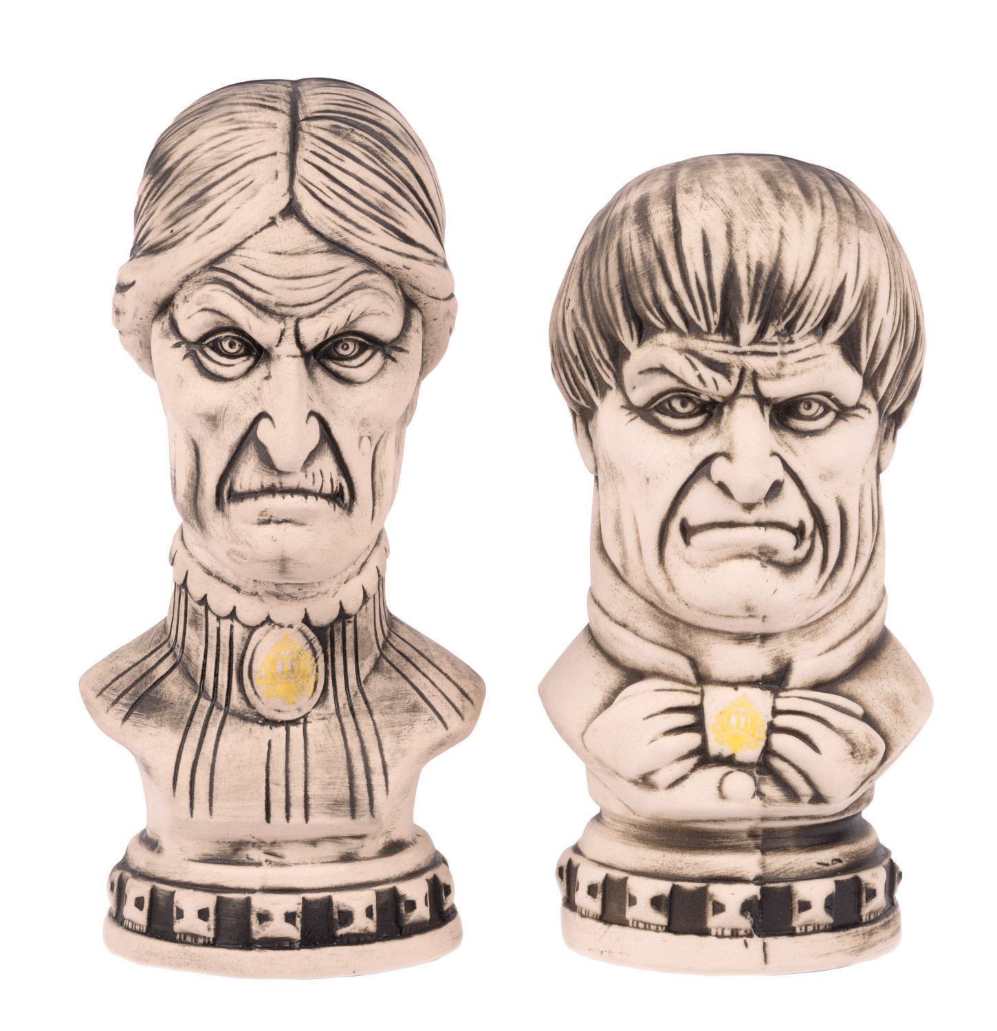 (Disneyland, 2019) A Pair of Club 33 Haunted Mansion Bust Mugs. The pair of mugs were offered to Club 33 Members and Guests coinciding with the 50th anniversary celebration of the Haunted Mansion at Disneyland. The mugs are on the character of the memorable Portrait Hallway Busts, feature a glow-in-the-dark Club 33 cameo, and Club 33 logo backstamp molded on the bottom of the base. The mugs measure 8"x4" and 9"x4" and are in very fine condition.