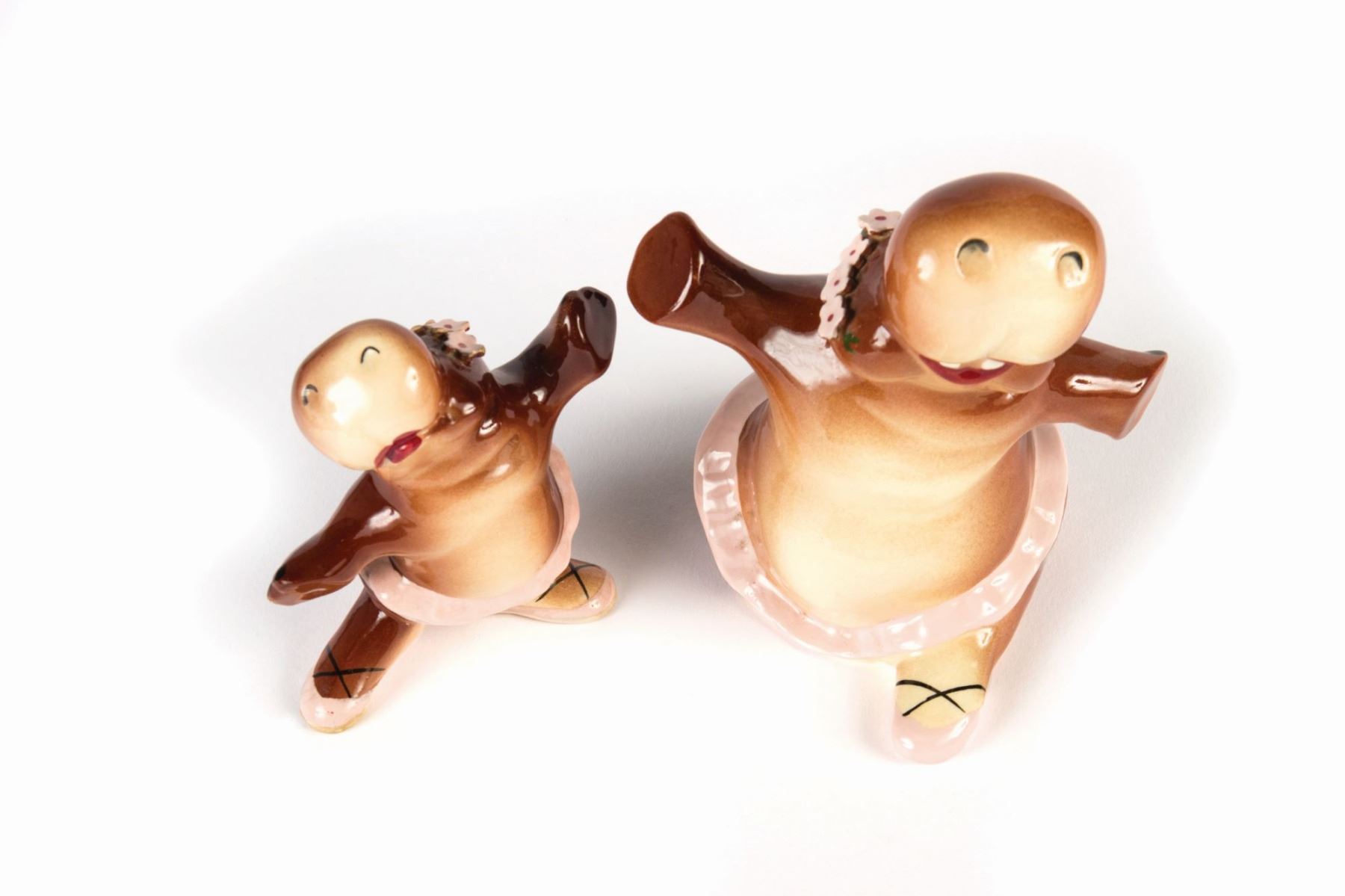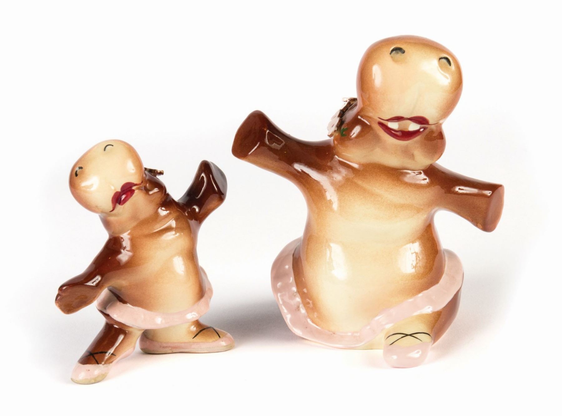 (Disneyland, c.1958) A pair of figures based on the Hippo from Disney's "Fantasia". These figures were originally sold at Disneyland, and the larger of the figures functions as a coin bank. The figures measure 4.25" and 5.75" tall and the pair is in fine condition.