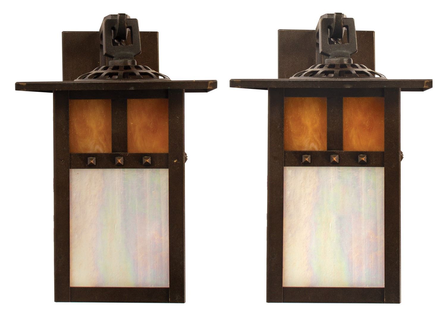 (Grand Californian, 2001) A pair of headboard lights from Disney's Grand Californian Hotel & Spa. These lamps were removed during a recent refurbishment to the hotel and feature the American Craftsman style that has been the signature of the hotel since it first opened in 2001. These impressive lamps offer a rare opportunity to furnish your home with the same quality, style, and care that Disney has used in one of their most popular hotels over the last 16 years. Both lamps measure 9.75"x6.25" and 8.5" deep. The pair are in very good condition with some expected moderate wear from use. Both lights are functional.