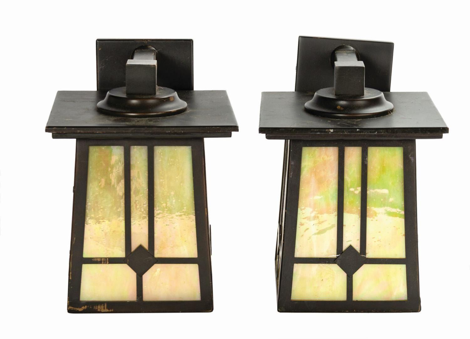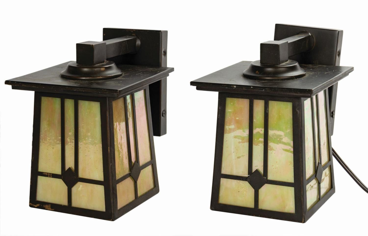 (Grand Californian, 2001) A pair of vanity lights from Disney's Grand Californian Hotel & Spa. Emblematic of the American Craftsman design for which the hotel is celebrated, these wall-mounting lamps were removed during a recent refurbishment. This is a rare opportunity to outfit your home with the quality, style, and care that Disney uses in one of its most popular resort destinations. Both lights are functional and accept standard bulbs. Each measures 8"x6" and 7.75" deep and is in very good condition, exhibiting some scratching and surface wear from resort use.