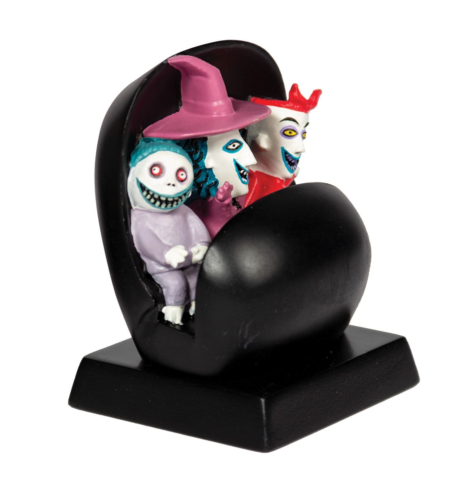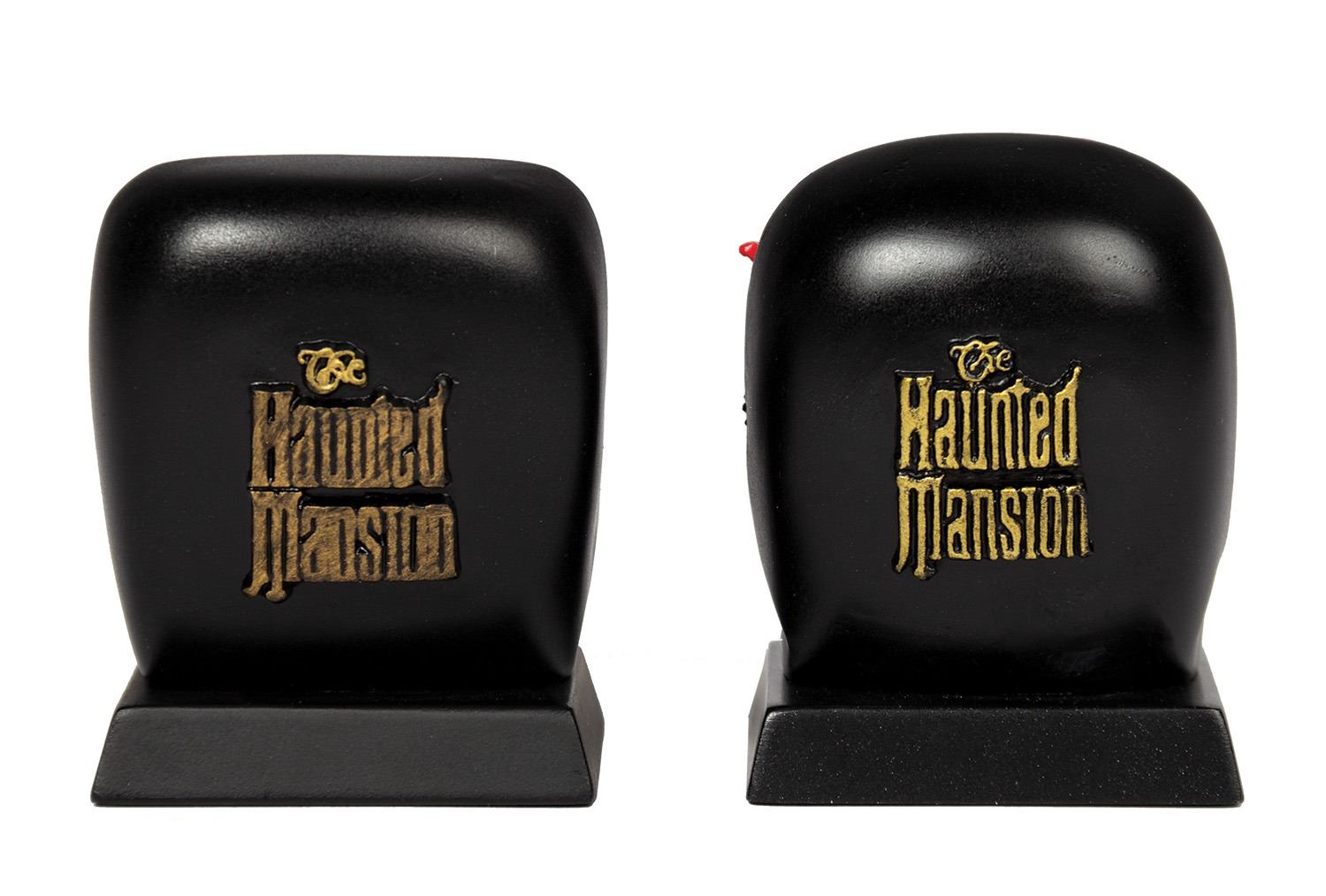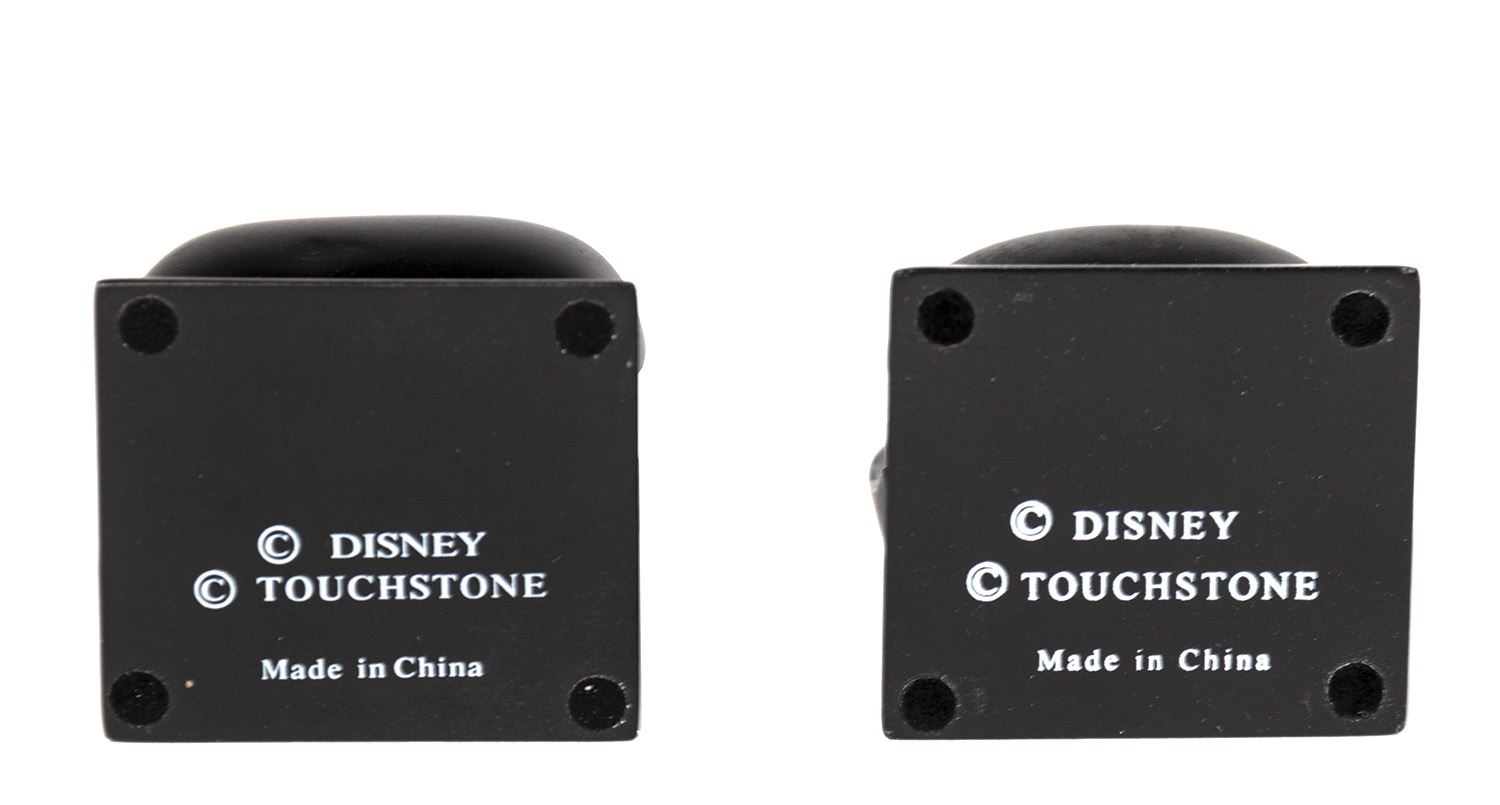 (Disneyland, c.2001) A pair of figures based on characters from The Nightmare Before Christmas. The figures are depicted riding the familiar Doom Buggy vehicles from the Haunted Mansion, and were created in response to the Haunted Mansion Holiday overlay at Disneyland. These resin figures measure 2.5"x2" and are in very good condition with minor wear from use. The original boxes are included.