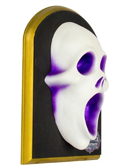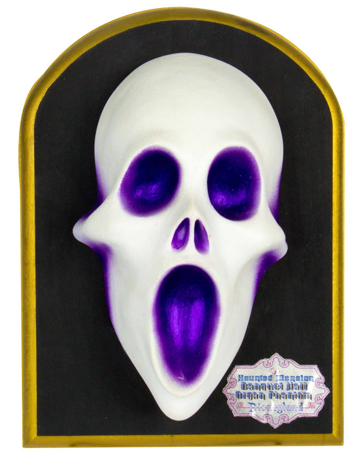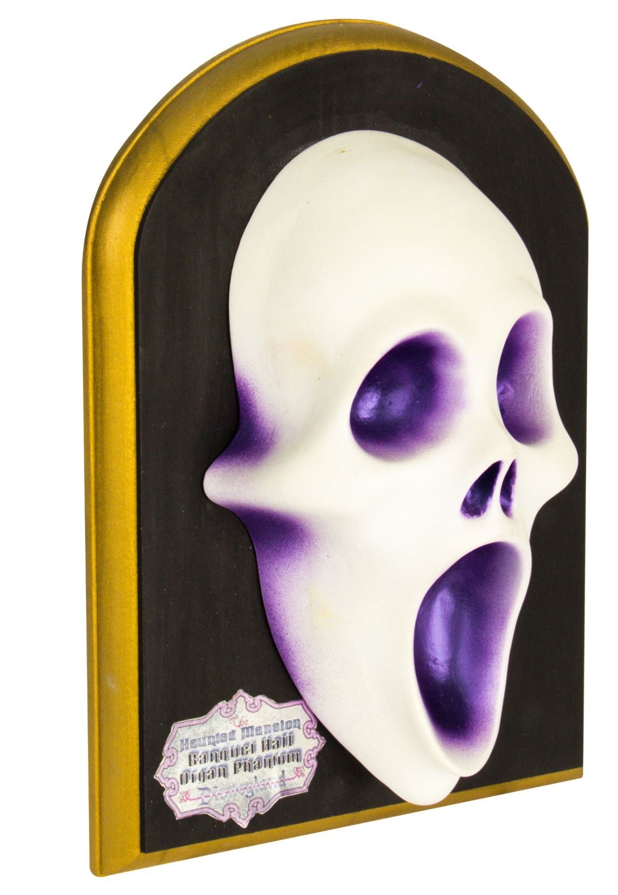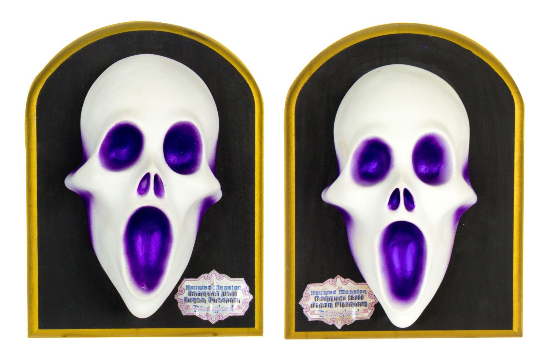 (Disneyland, c.2000) A pair of plaques depicting the ghost faces which appear out of the organ in the Banquet Hall scene of the "Haunted Mansion". These custom-built matching plaques are hand-painted and are ready to hang on the wall. The plaques measure 10.75"x8" and 4" deep. The condition is very good with little wear.