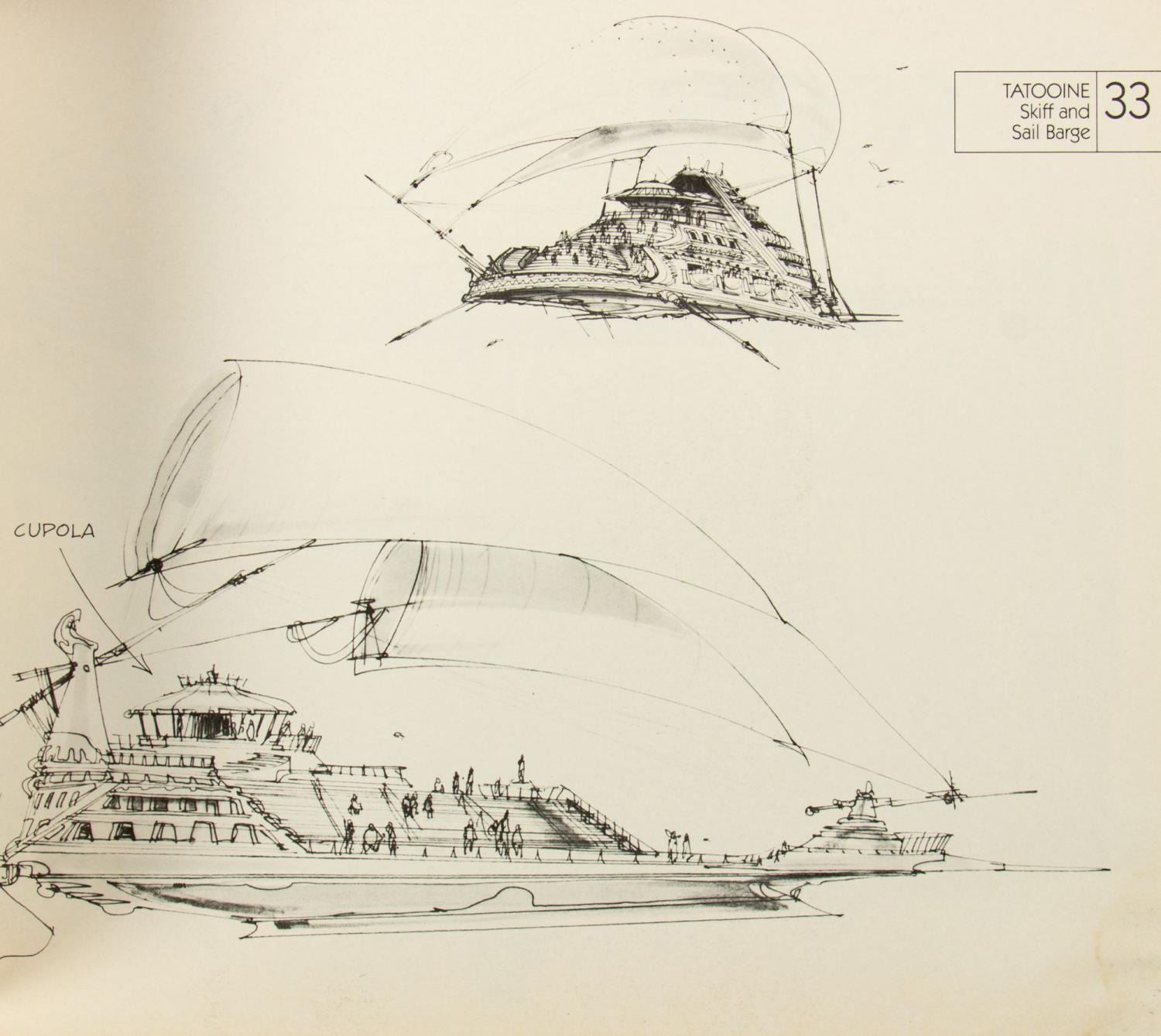 (Lucasfilm, 1980/83) A pair of sketchbooks from The Empire Strikes Back and Return of the Jedi. The books contain images of concept art and information on the development process for the various characters, vehicles, and locations seen in the films. Measuring approximately 8.5"x11" each, the books are in good condition with some edge-wear. Both have moisture damage in the lower right corner, which has caused some discoloration and slight rippling to the pages. The 95-page Empire Strikes Back sketchbook has some discoloration on the spine, while the 96-page Return of the Jedi sketchbook has a nametag which has been whited out adhered to the title page. These books offer a fascinating look into the development of the popular franchise.