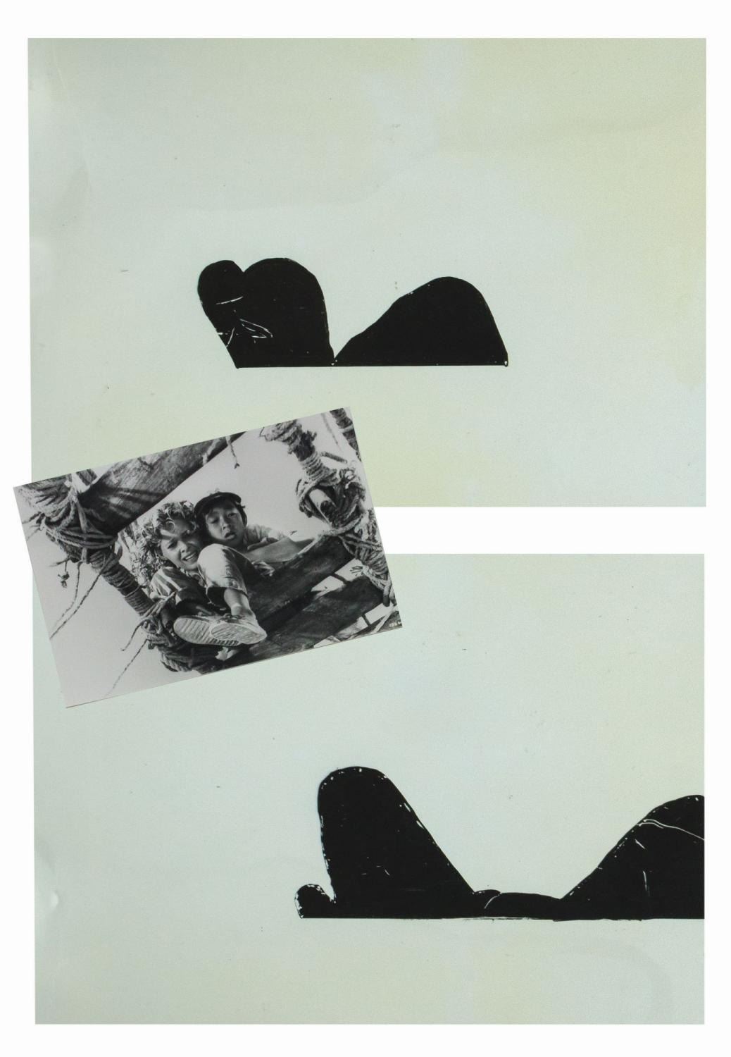 (Paramount, 1984) A pair of original cels used in the rotoscoping of the climactic rope bridge scene in Indiana Jones and the Temple of Doom, from the collection of a former studio employee. To create the illusion that characters were hanging hundreds of feet in the air above a rushing river infested with crocodiles, rotoscoping was used by the special effects team to trace over the film images frame by frame. A gelatin silver reference photo on RC paper depicting Willie and Short Round is also included. The cels measure 8.25"x11.75" and are in good condition with some scuffs and small chips to the paint. The 5"x7" photo is in fine condition.