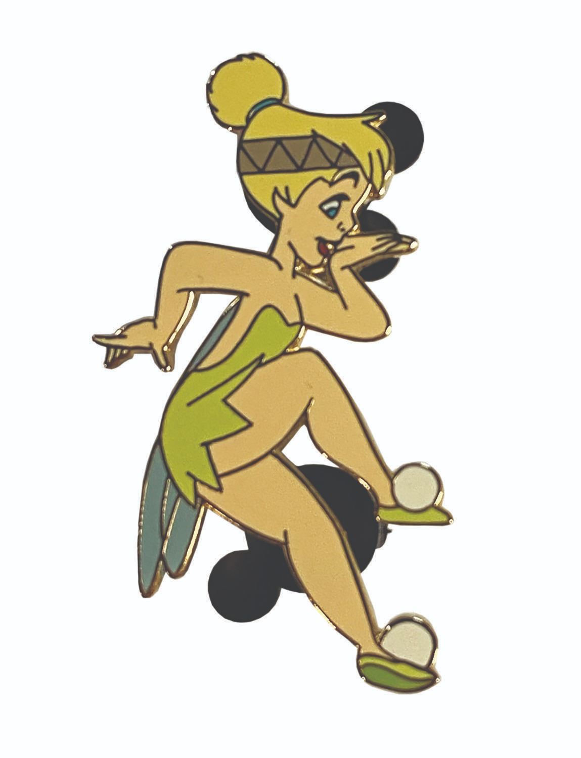 (Disneyland, 2004) A pair of Frontierland themed Tinker Bell pins from Disney Auctions. One pin features Tink scouting in a coonskin cap and other showcases her dancing with what is meant to be a Native American headband. Both were released in an edition of 1000. These poses are taken from Tinker Bell's memorable role in the opening credits of the 1950s Disneyland TV show. Measuring approximately 2"x1.75", the pins are in very good condition with minimal wear.