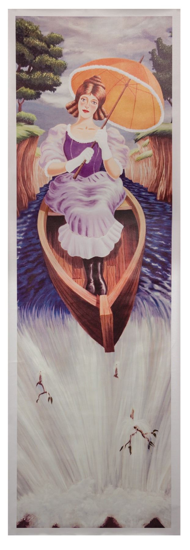 (Disneyland Paris, c.2000s) A wonderful print of one of the stretching portraits from Disneyland Paris' Phantom Manor attraction, created using the Disney Gallery's Print on Demand service. This print replicates the stretching portrait featuring Melanie Ravenswood traveling in a boat toward a waterfall. Measuring 74"x24.25", the print is in very good condition.