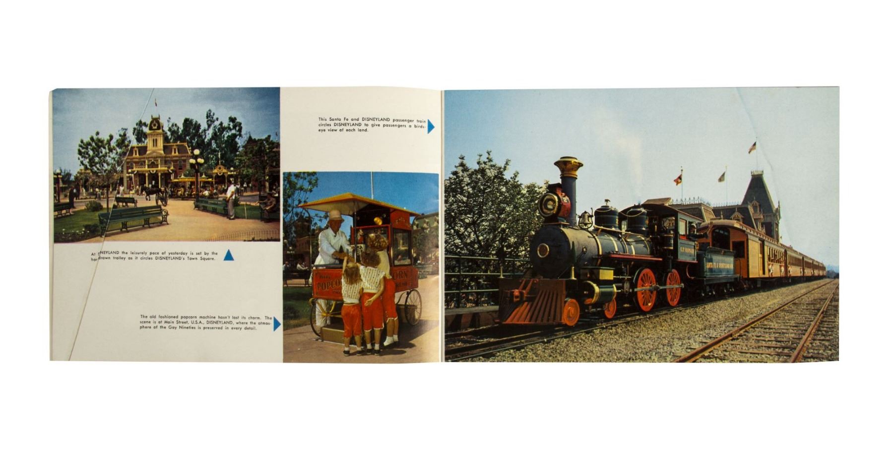 (Disneyland, 1955) An extremely rare opening year souvenir book that features early photos and descriptions of the park. This 26-page book measures 6"x8.75" and is in good condition with some creasing and edge-wear.