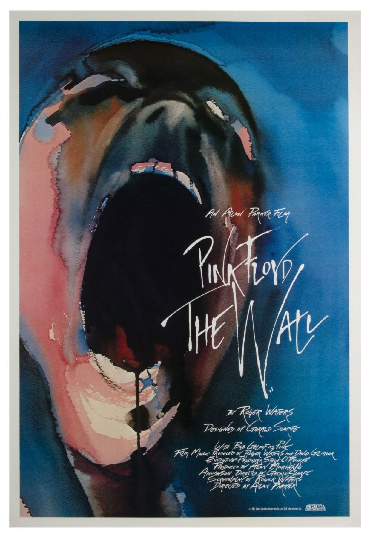 (MGM, 1982) An original one sheet poster for the theatrical release of "Pink Floyd: The Wall". The critically acclaimed live action & animated musical drama used this chilling image created by artist Gerald Scarfe as the theatrical poster artwork. This particular poster comes from the collection of Bill Wallen and has never been folded. Measuring 41"x27", the poster is in very good condition with minor wear around the border.