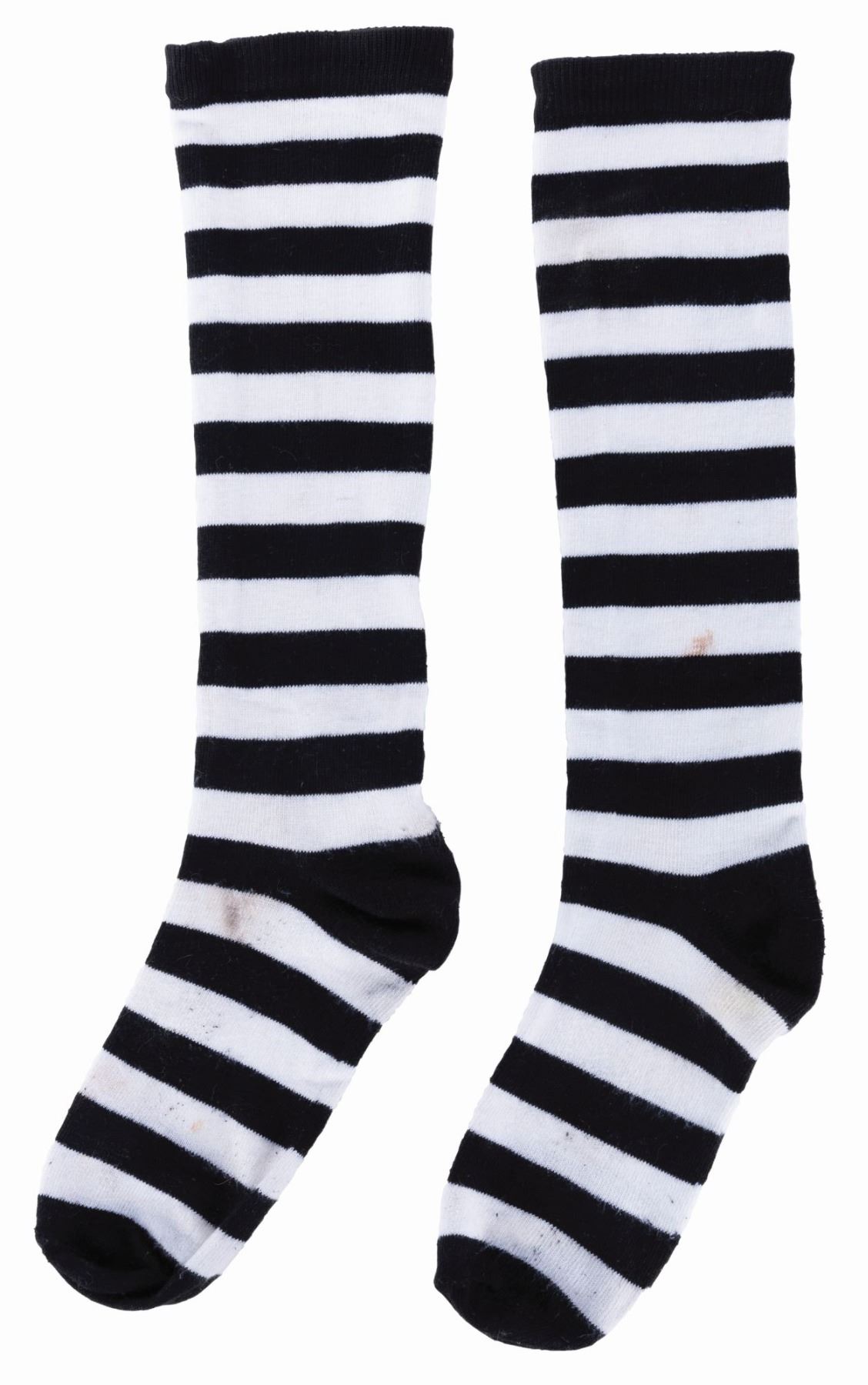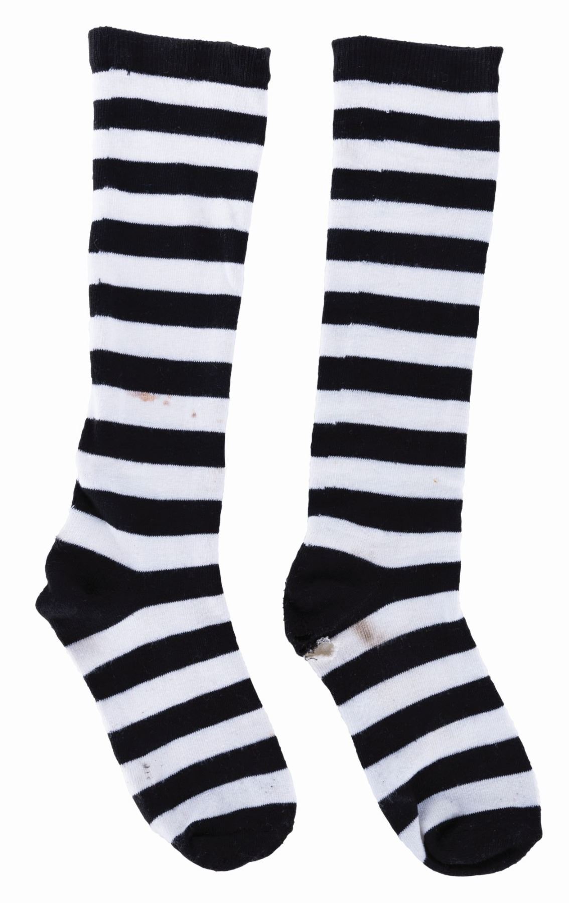 (Disneyland, 1980s) A pair of striped costume socks worn by a Pirates of the Caribbean Attraction Host. Measuring 18.5" long, each sock is in good condition exhibiting expected wear from Cast Member use.