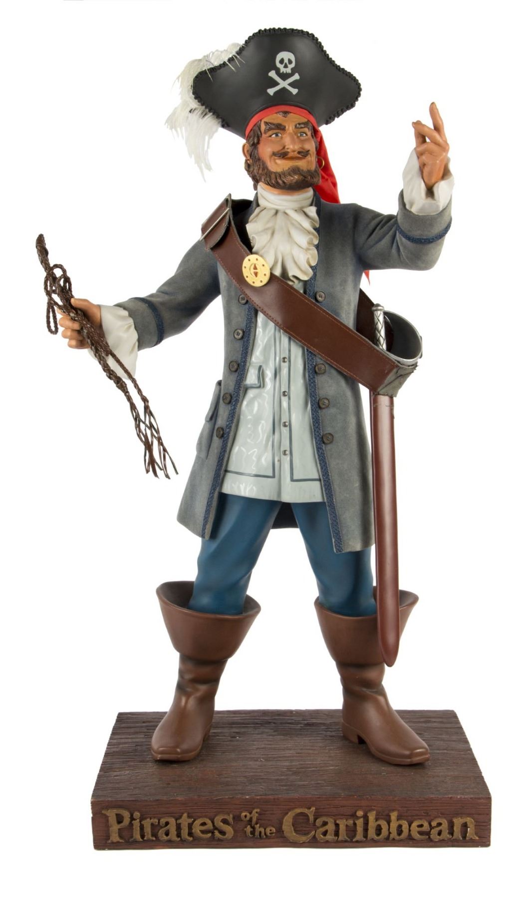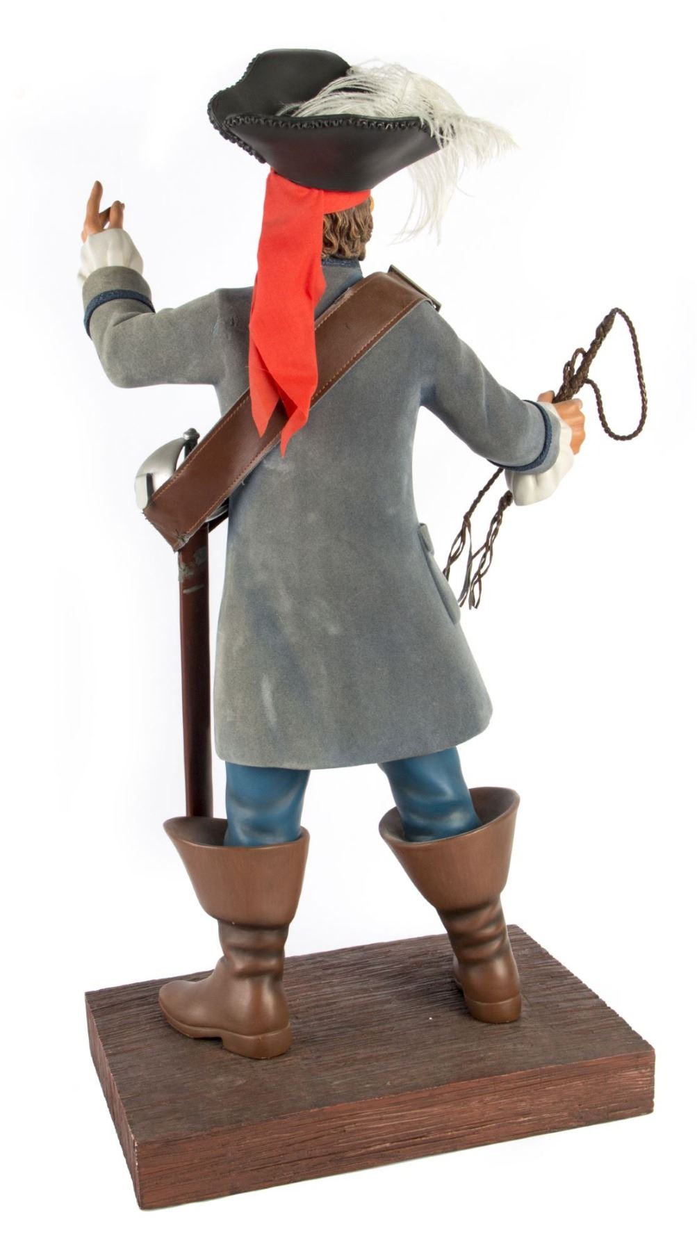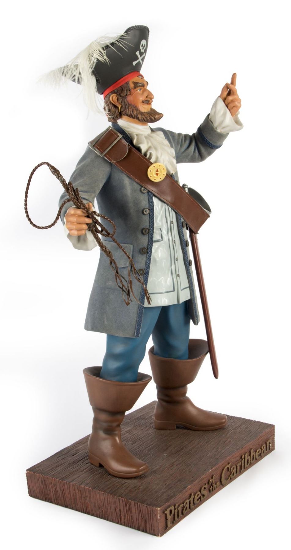 (Disneyland, 2005) A rare Disneyland "Big Fig" titled "The Auctioneer". This figure is based on the auctioneer from Disneyland's "Pirates of the Caribbean" attraction and was created by Kevin Kidney and Jody Daily to celebrate Disneyland's 50th anniversary. This figure measures an astounding 28" tall including its base, and is in very good condition with some faint fading to the coat and a few spots of wear throughout.