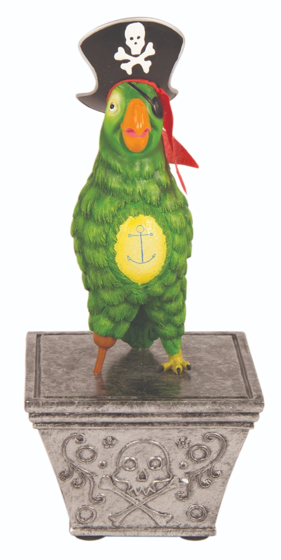 (Walt Disney World, c.2010s) A limited edition Barker Bird figure based on the animatronic prop seen in Pirates of the Caribbean at Walt Disney World. The bird is created in resin and has a small drawer built into the base. Limited to just 500 pieces, this collectible was created as part of the Adventures on the Seven Seas Lagoon event. Measuring 10.5" tall, the figure is in very fine condition and comes in its original box.