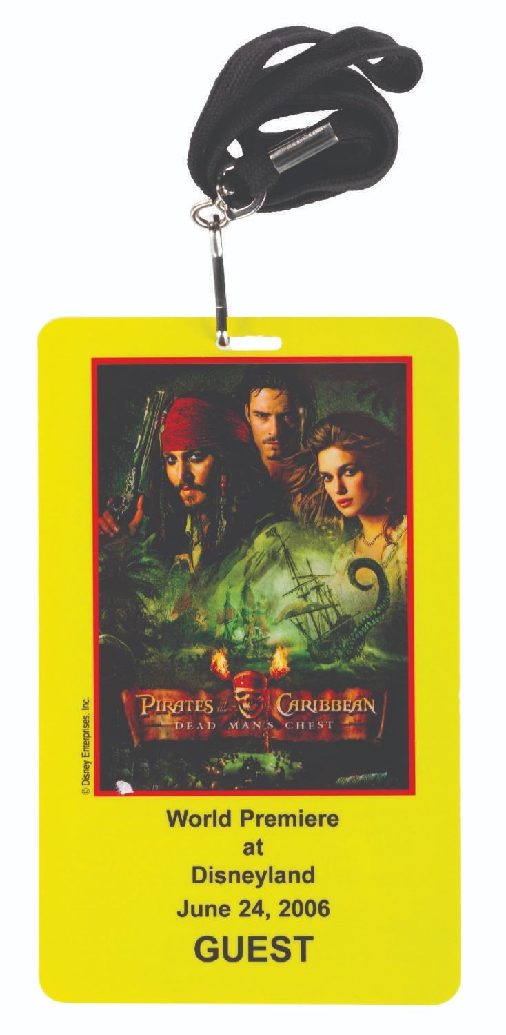 "Pirates of the Caribbean" Treasure Props, Premiere Pass, and Crew Shirt.