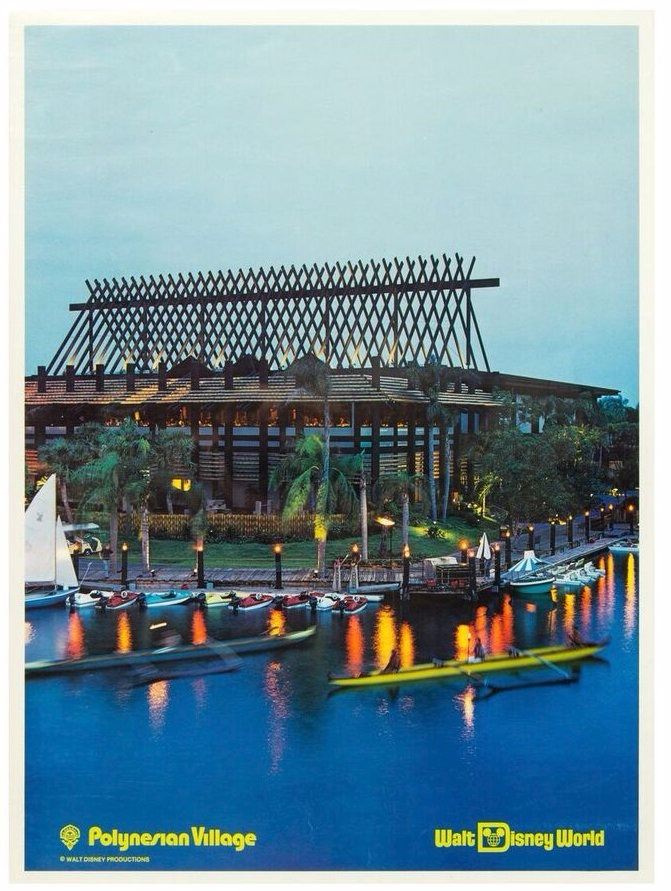 (Walt Disney World, 1980s) A poster created to promote Walt Disney World's Polynesian Village Resort. This poster features a beautiful photo of the resort and reads "Polynesian Village - Walt Disney World" along the bottom. This item measures 24"x18" and is in very good condition with little edge-wear.