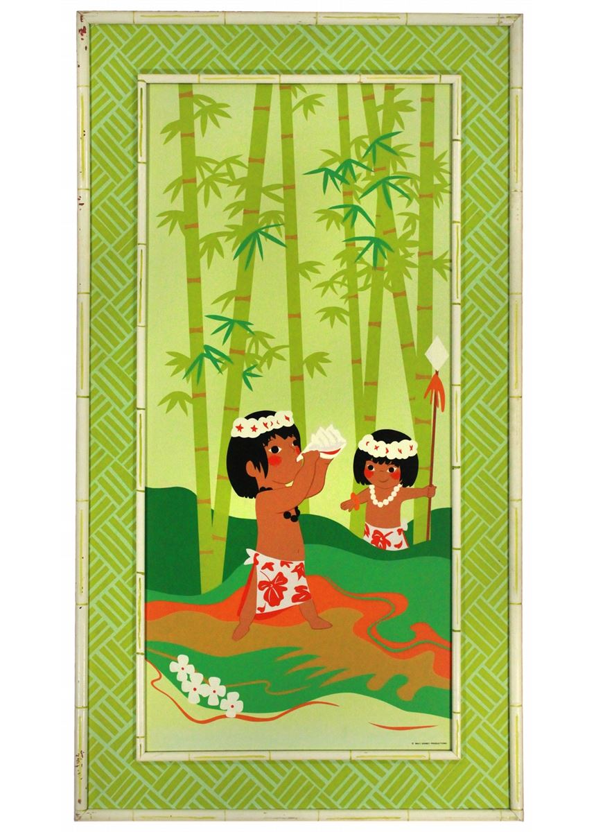 (Walt Disney World, 1970s) Beautiful silk-screened artwork that decorated the rooms at the Polynesian Village Resort. The artwork is taken from concept work by Imagineer Mary Blair. Measuring 25 x 45 in. and in good used condition with expected wear.