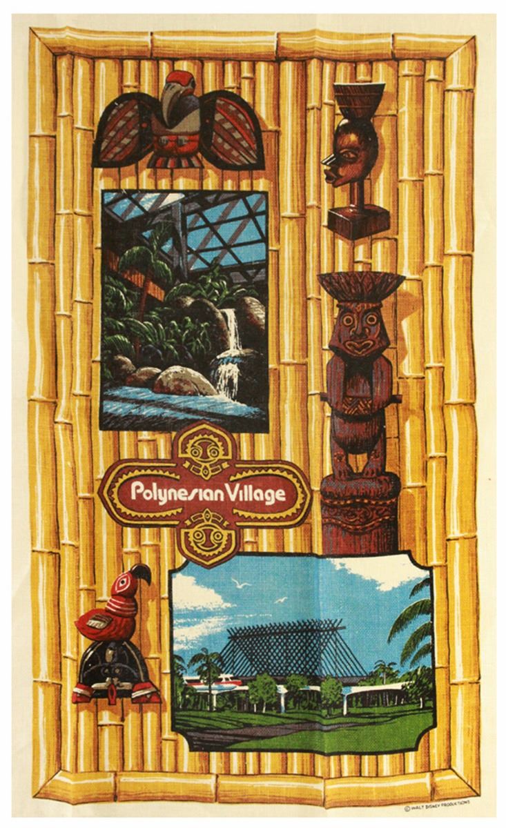 (Walt Disney World, 1970s) Souvenir kitchen towel from the Polynesian Village at Walt Disney World. Measures 27"x16". In fine condition.