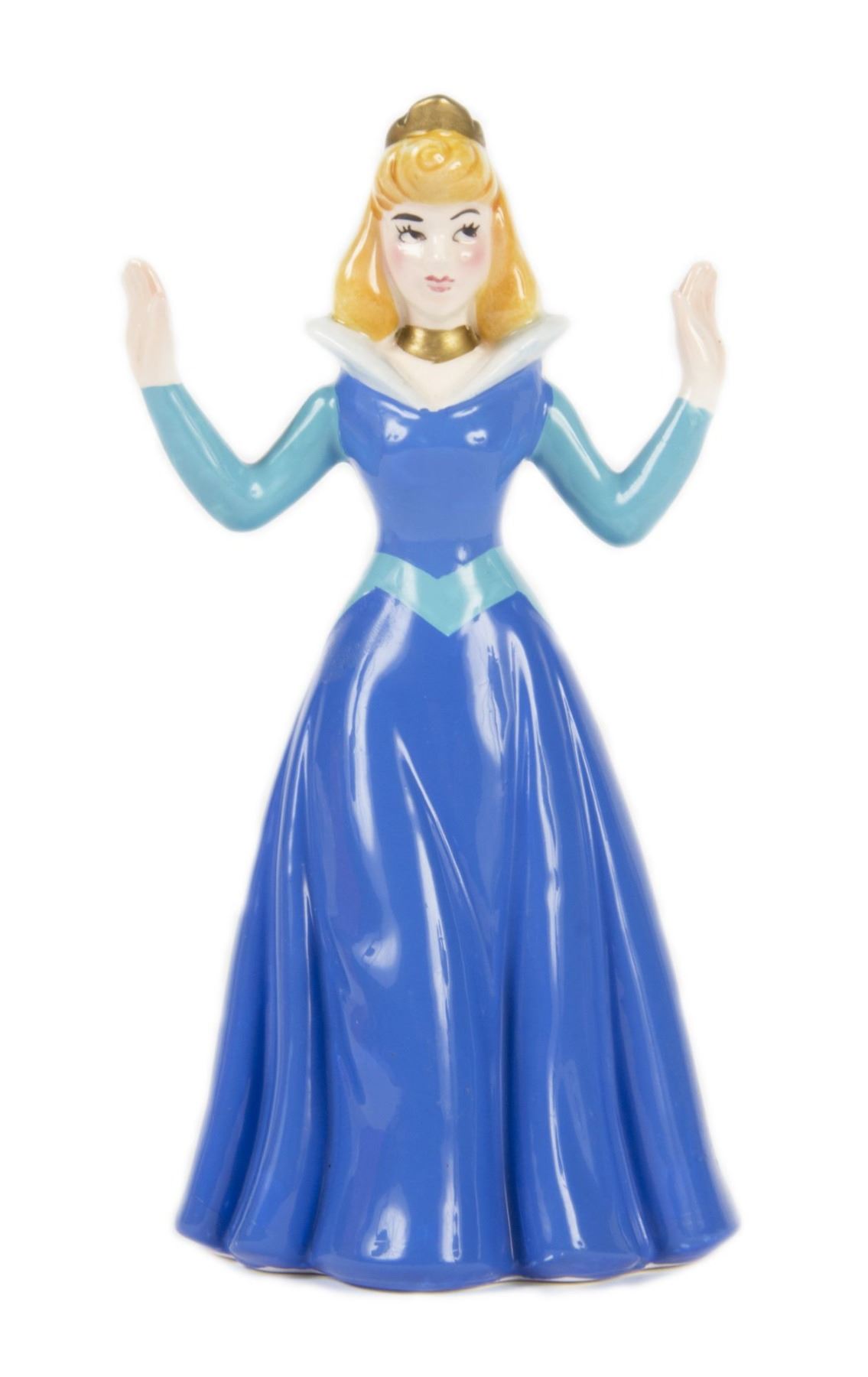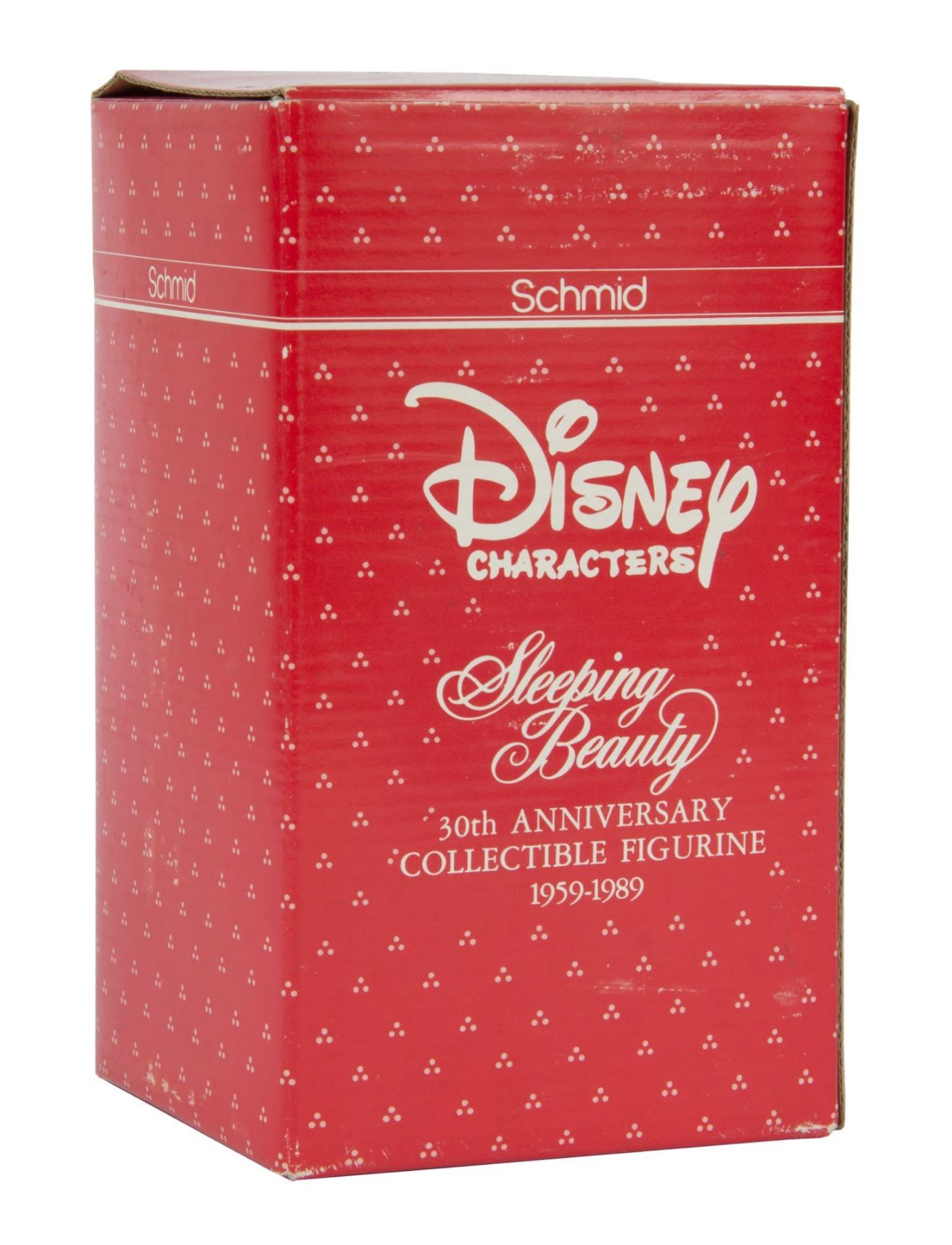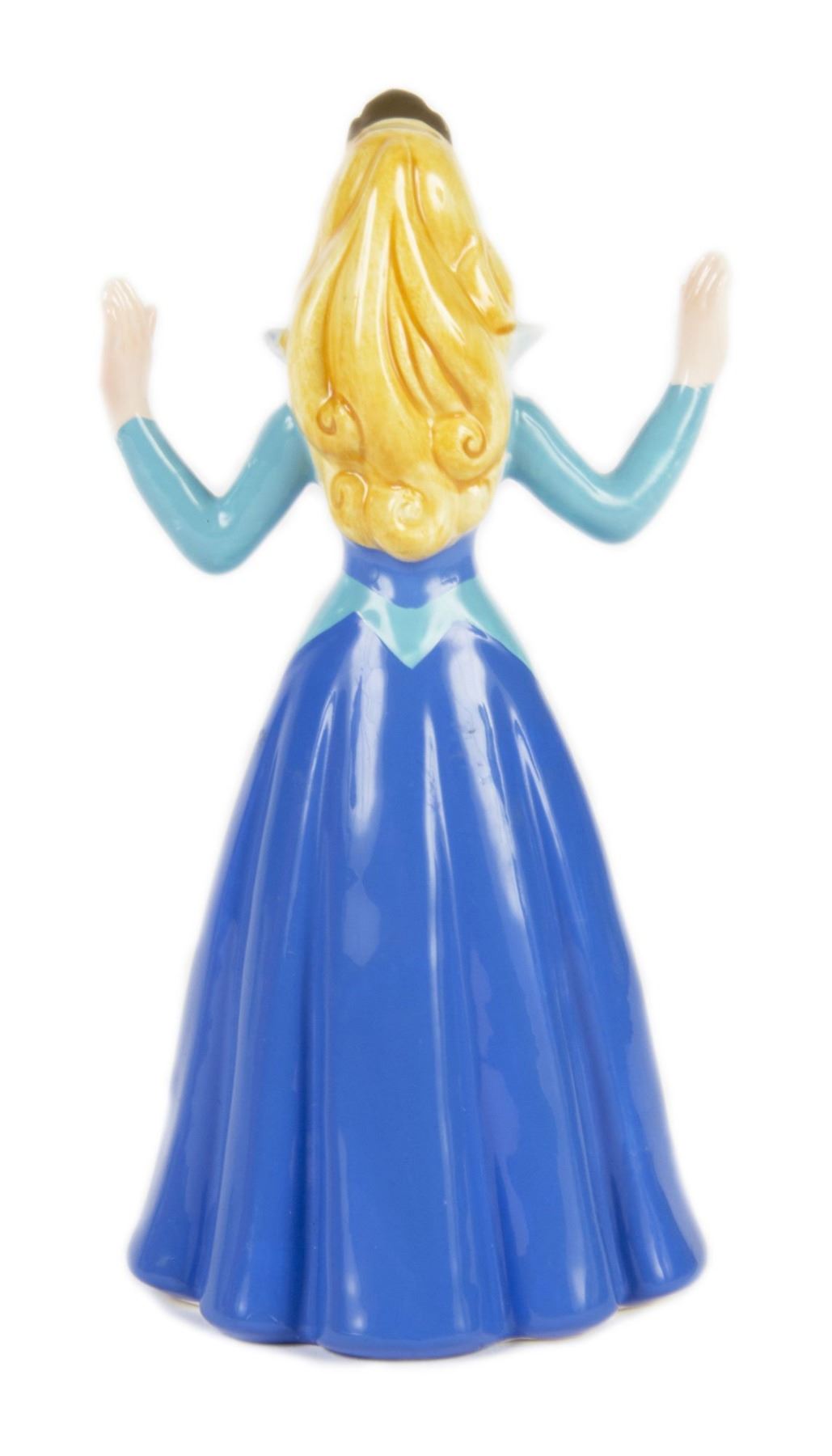 (Schmid, 1989) A special ceramic figure of Princess Aurora in her blue dress that was created to celebrate the 30th anniversary of Sleeping Beauty. The figure measures 6.5" tall and is in good condition overall with minor wear to the base from previous display. The figure comes with its original box.