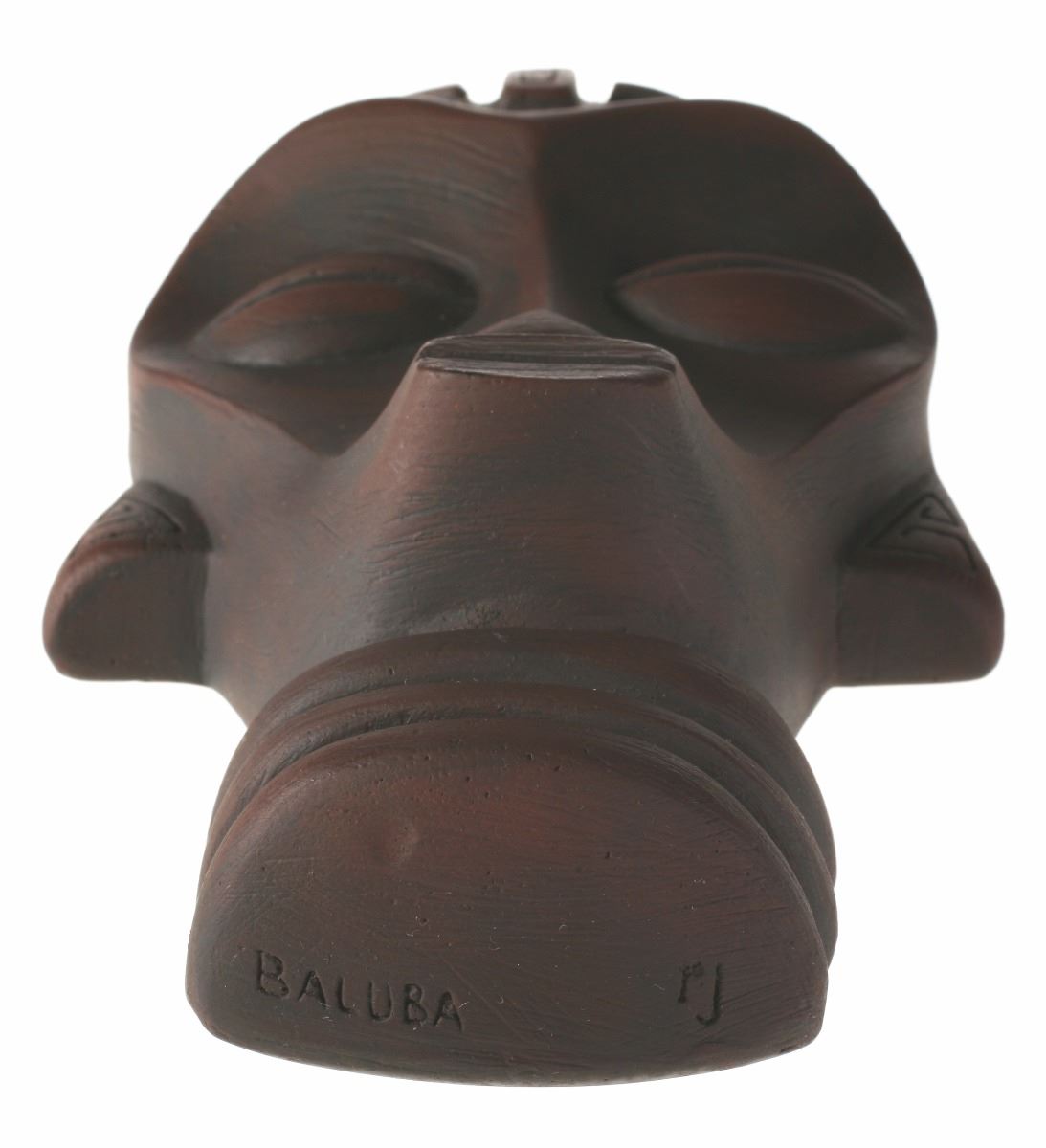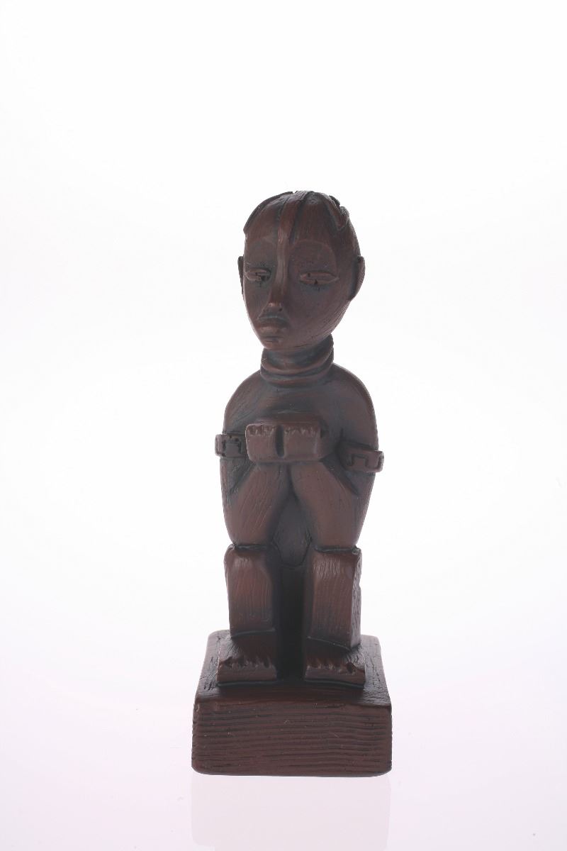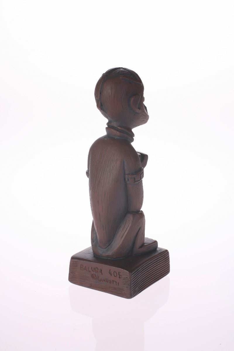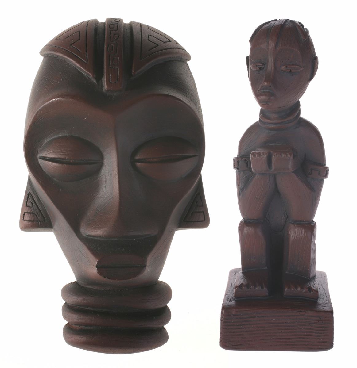 (Disneyland, 1970s) Collection of Randotti souvenirs including (1) "Baluba" Polynesian-style wall plaque and (1) "Sitting Baluba" tiki statue with dark woodgrain finish.Pair is in very good condition with minor wear.