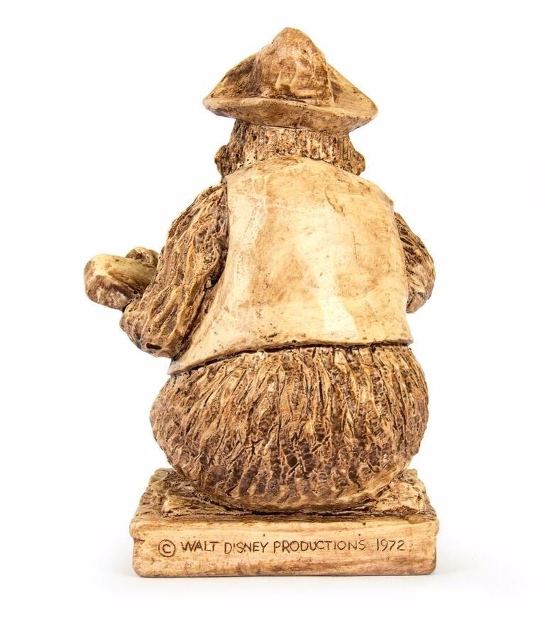 (Disneyland, 1972) A rare Randotti "Big Al" Country Bear Jamboree statue. This dark-toned figure with brown paint has a carved wood look and features a Walt Disney Productions copyright along the base. This item measures 4.5"x4.25" and 6.5" tall, and is in very good condition.