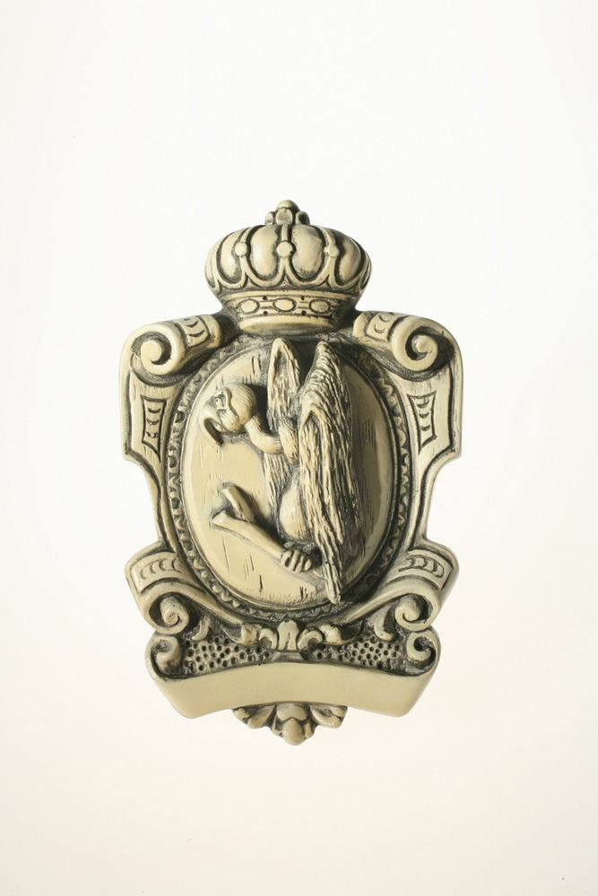 (Disneyland, 1974) Randotti glow in the dark vulture plaque. Ribbon-shaped base could be personalized at the time of purchase at the park, but this piece remains unaltered. Ready to hang on the wall. Measures 5.25"x1.75" and 8" tall. In very fine condition.