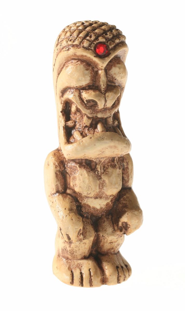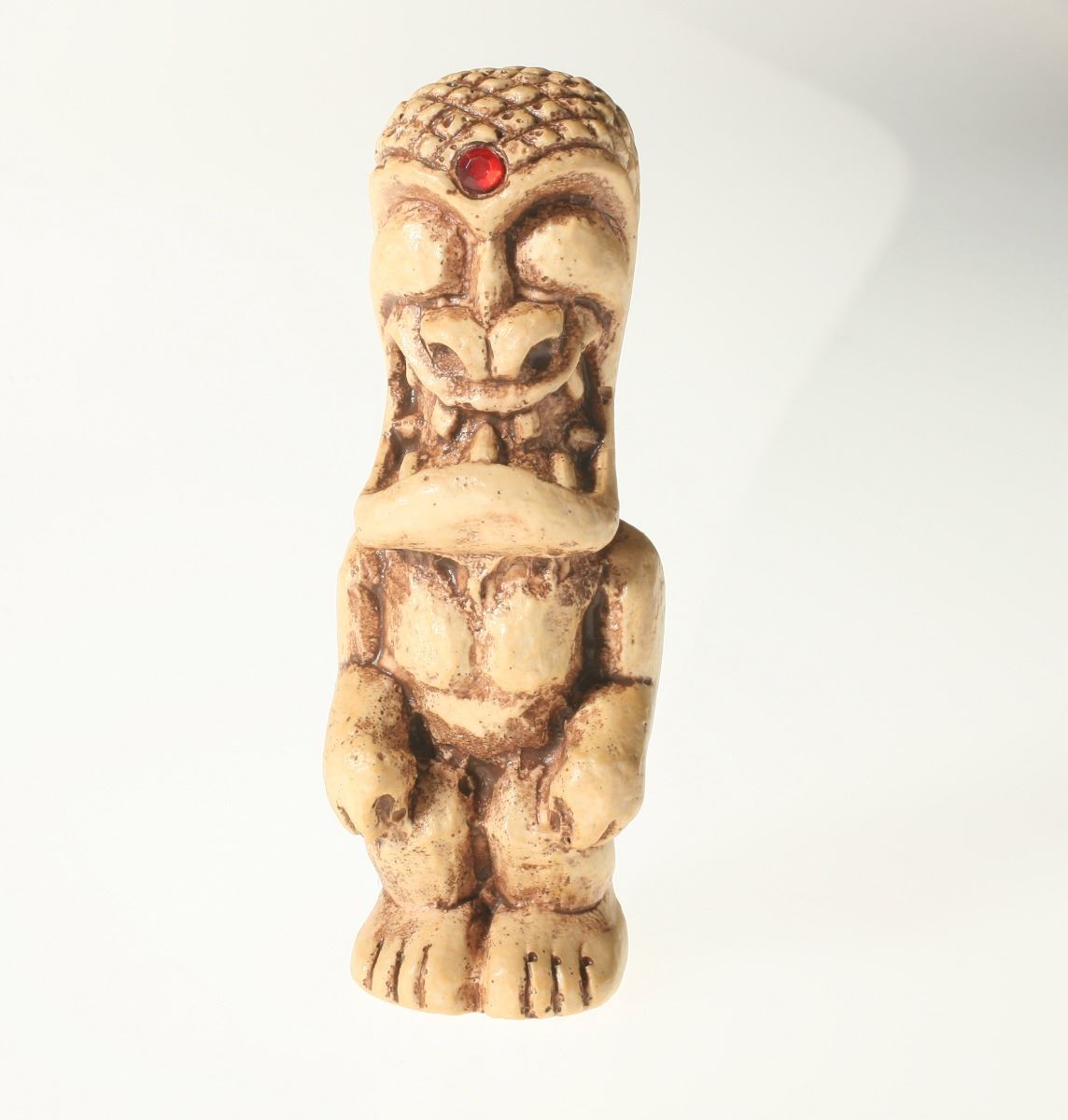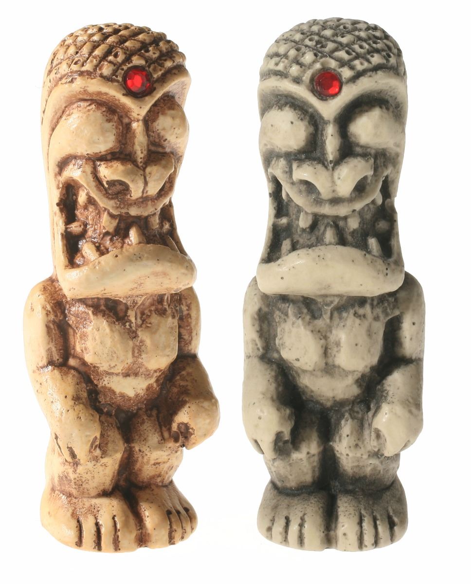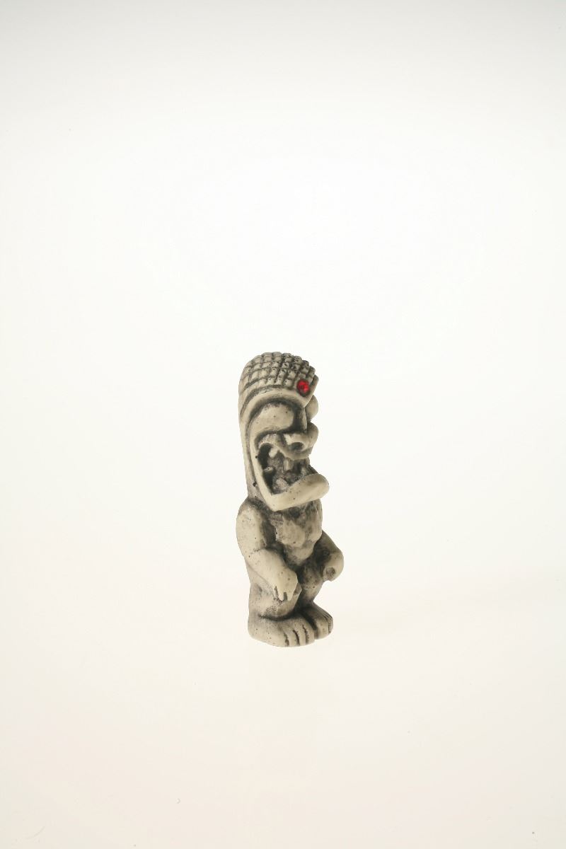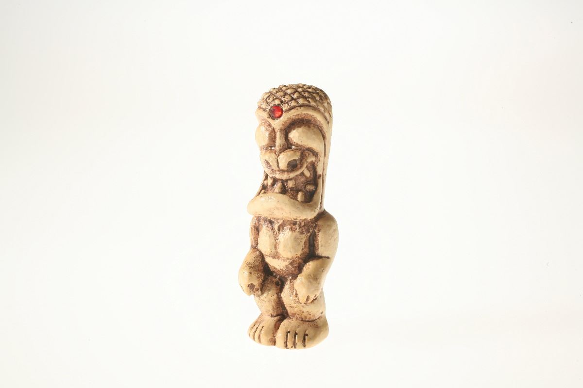 (Disneyland, 1970s) Collection of Randotti souvenirs including (1) Randotti glow in the dark lighter-toned, and (1) darker toned, mini war god figurines with red jewels on their foreheads. Measures 1"x0.75" and 3.25" tall, each. Pair is in very fine condition.
