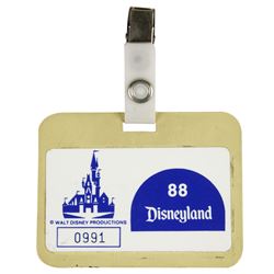 (Disneyland, c.1980s) A very rare clip-on Disneyland badge with a Walt Disney Productions copyright. The badge is No. 0991, and reads "88 Disne...
