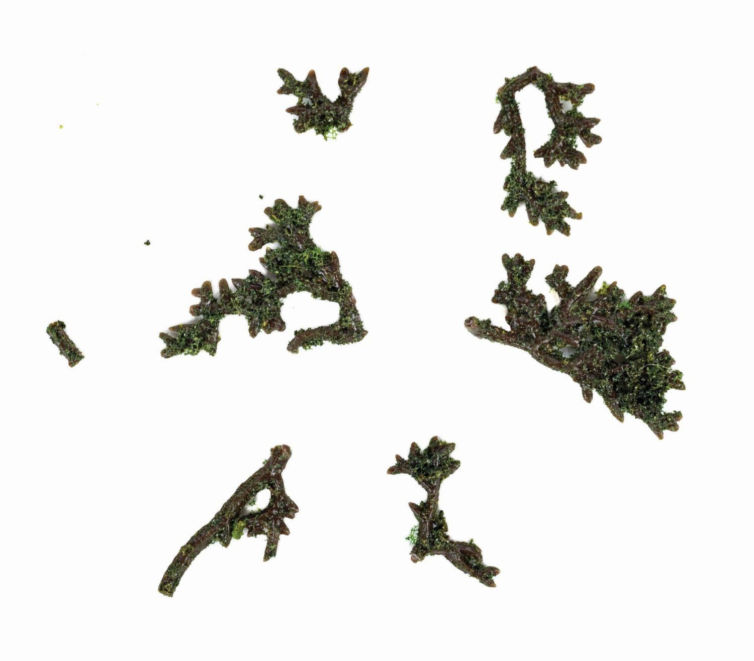 (20th Century-Fox, 1983) A collection of miniature tree prop fragments from the production of Return of the Jedi. The miniature props were used in the production of models used in scenes depicting the forest moon of Endor. Measuring various sizes under 1", the fragments are in very good used condition.