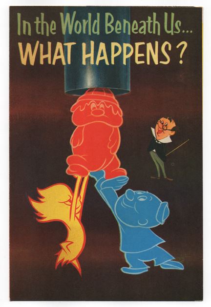 A great vintage booklet on the benefit of oil production in California. This piece has several illustrations that both show how the oil is obtained, and how that benefits the average Disneyland patron. A nice historic piece that shows that often, the companies and businesses that Walt brought into the park, were huge powers in the economy, and often, like oil, are still huge powers today. In very fine condition with light edge-wear. Measures 8.25"x5.5" folded, and 8.25"x11" unfolded. Double-sided.