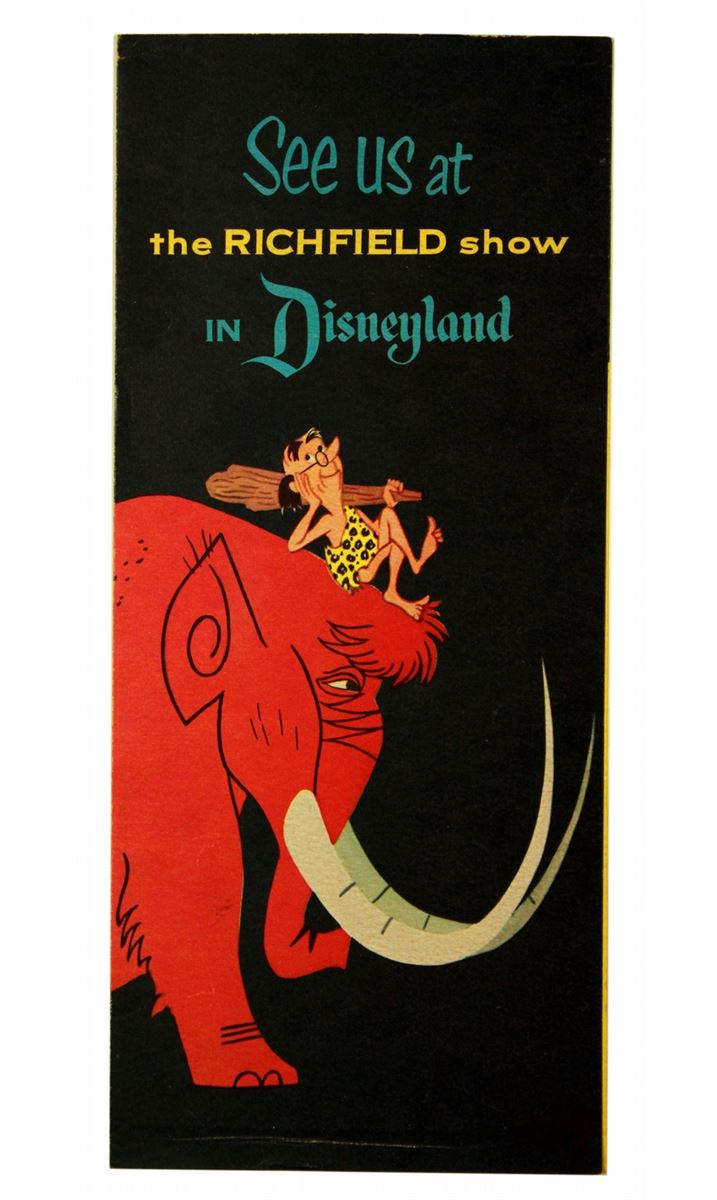 (Disneyland, 1955) Exhibit pamphlet for Richfield’s The Story Of Oil exhibit in Tomorrowland. Measuring 8.75 x 3.75 in. folded and in very good condition.