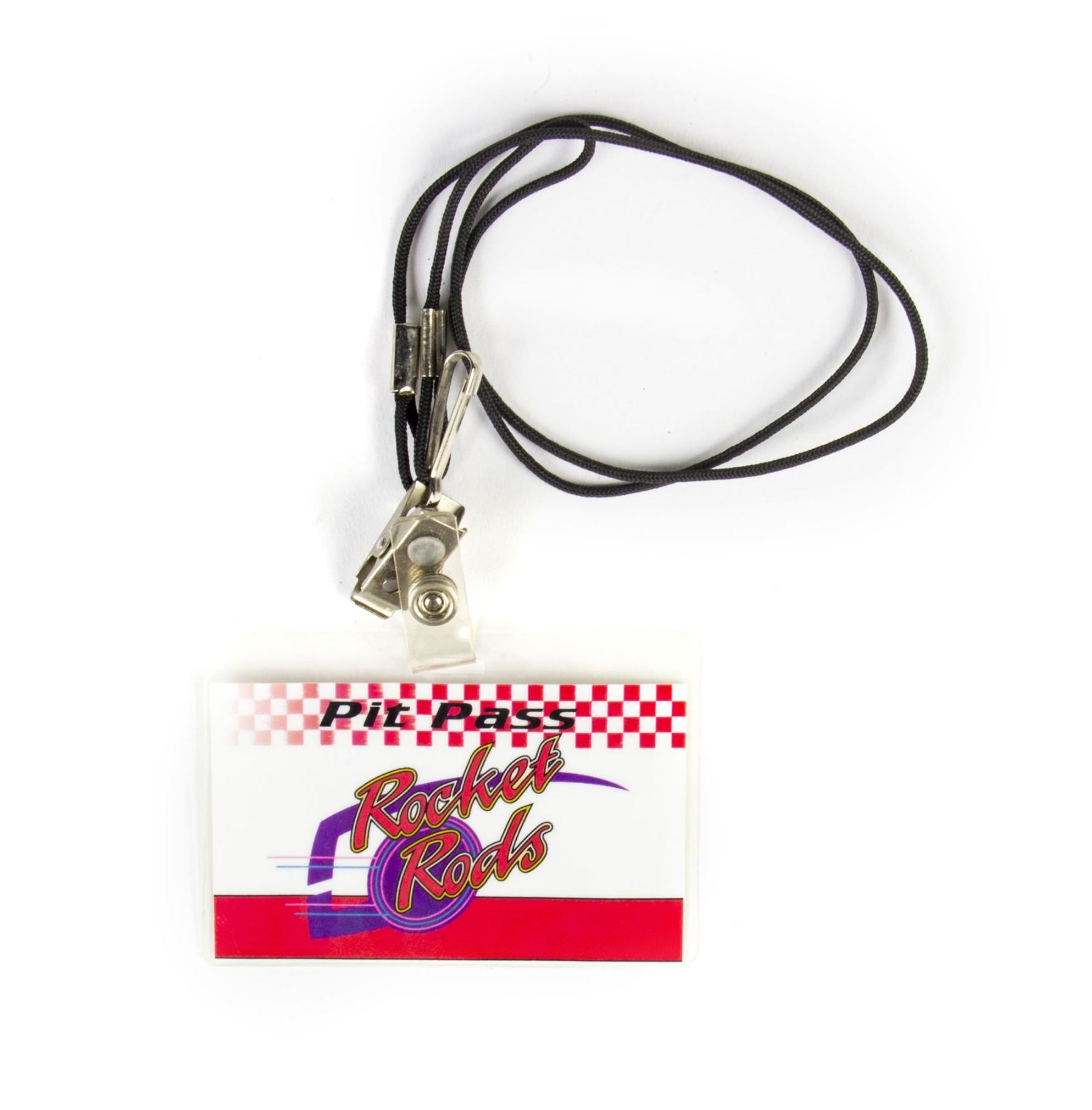 (Disneyland, c.1998) A very rare pre-opening "Pit Pass" for crew members working on Disneyland's "Rocket Rods" attraction. This employee pass features the logo for the attraction on the front with the word "Crew" on the back, and comes in a protective lanyard. Measuring 2.5"x3.75", the pass is in very good condition with some minor wear from use.