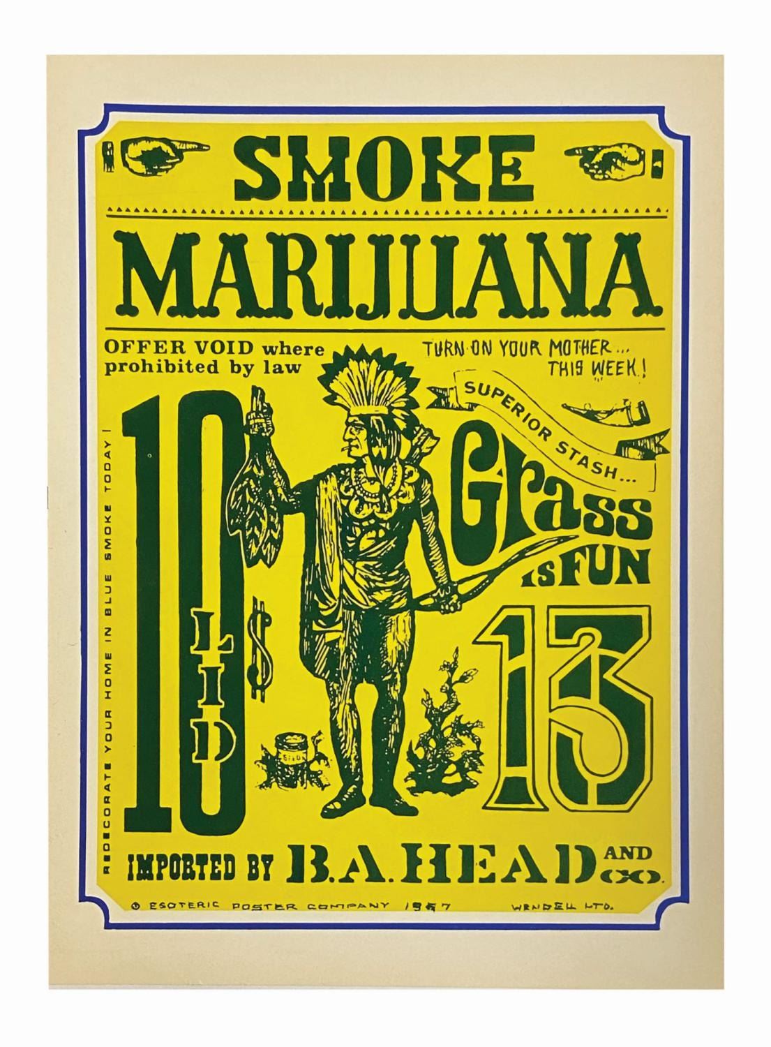 (Esoteric, 1967) A vintage handbill designed by Rolly Crump from his "Doper Poster" series and printed by Howard E. Morseburg's Esoteric Poster Company. A brilliant artist and Disney Imagineer, one might assume that Crump's extracurricular activities may have had a negative bearing on his day job. However, it has been reported that Walt Disney himself laughed upon seeing this design. Measuring 8.5"x6", the poster is in fine condition with minor browning at the extreme edges and faint corner wear.