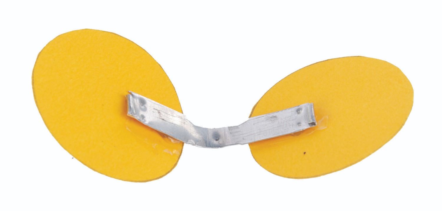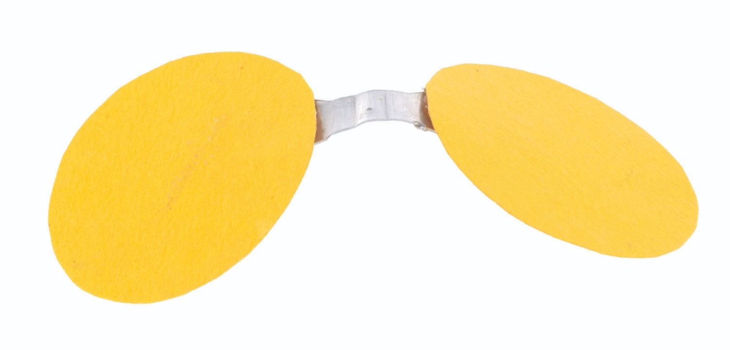 (Crump/Disney, 1957) One of several original eraser clip propellers created by Rolly Crump while working at Disney and displayed in a gallery show at the Disney Studio. Years later, Walt Disney remembered Rolly's propellers from that show when deciding to bring him over to WED Imagineering. This propeller, created in yellow paper adhered to an eraser clip from one of Rolly's Blackwing 602 pencils, measures 2.5" long and is in very good condition.