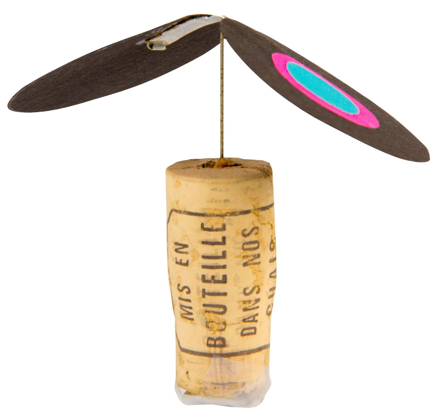 (Disney, c.1957) An original eraser clip propeller created by Rolly Crump during his time at the Disney Studio. This propeller is one of several which Rolly displayed in a gallery show at the Disney Studio. Years later, Walt Disney would remember Rolly's propellers from that show when deciding to bring him over to WED Imagineering. This propeller, created in black, pink, and blue paper adhered to an eraser clip from one of Rolly's Blackwing 602 pencils, measures 3.5" long and is in very good condition.